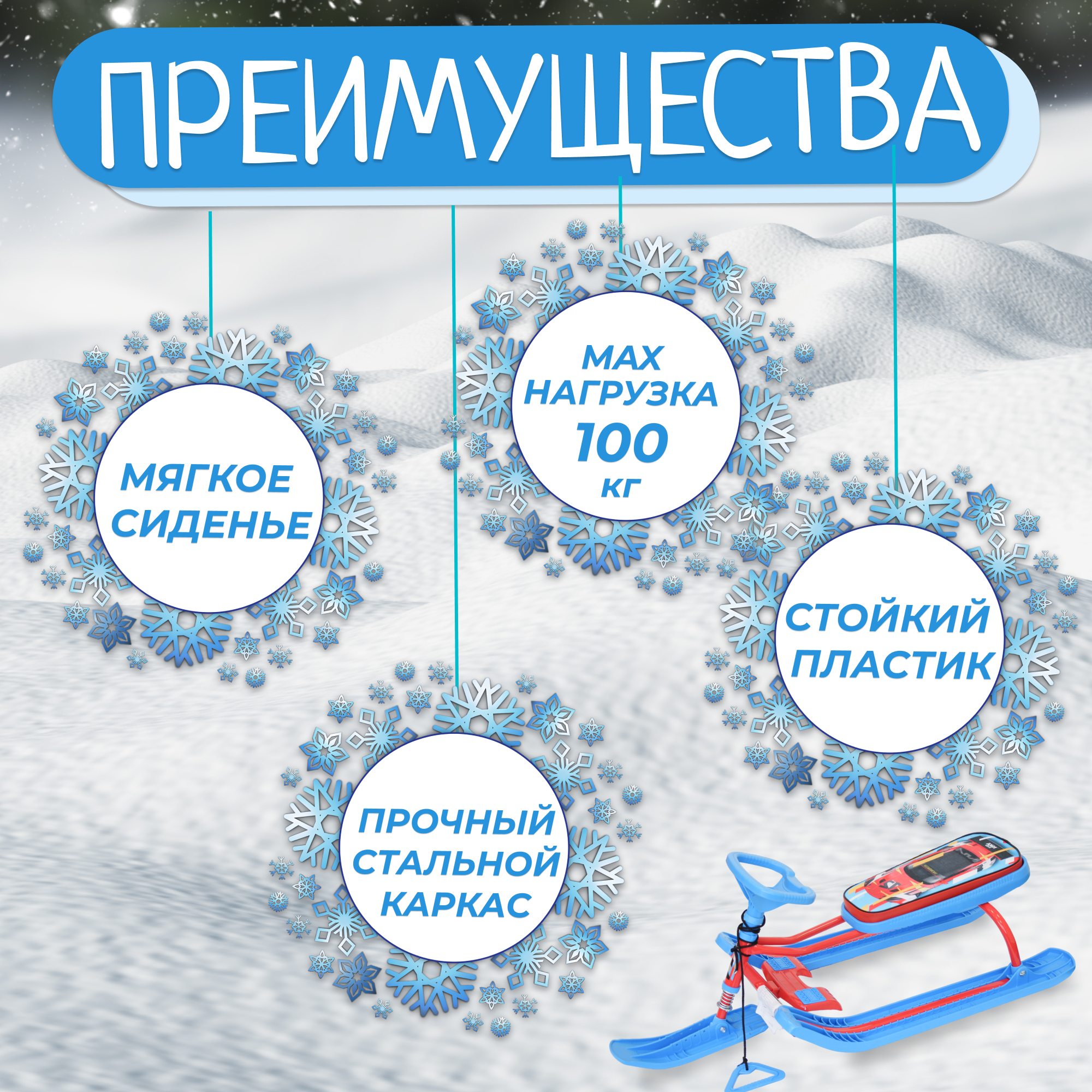 | Плюсы: | Большой снегокат |