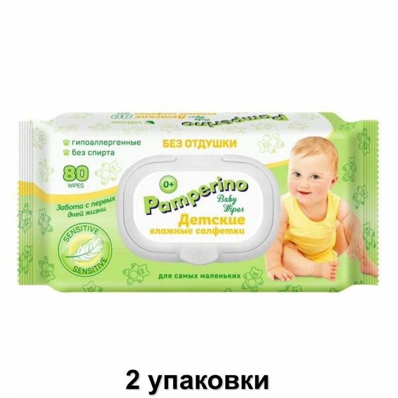 PAMPERINO Салфетки влажные , детские, без отдушки, 80 шт., 2 уп /