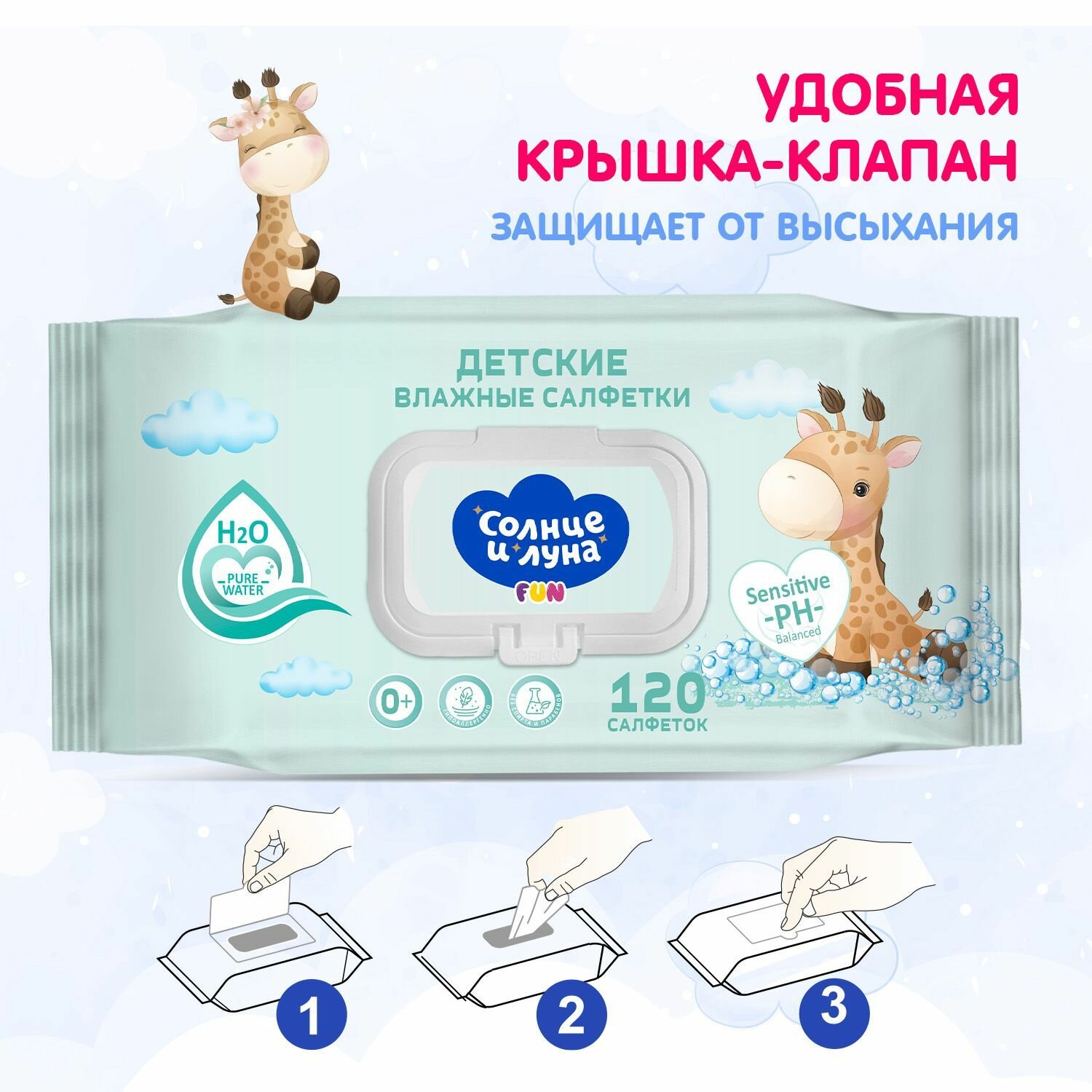 Влажные салфетки детские с крышкой 720 шт (120 шт х 6), солнце И луна