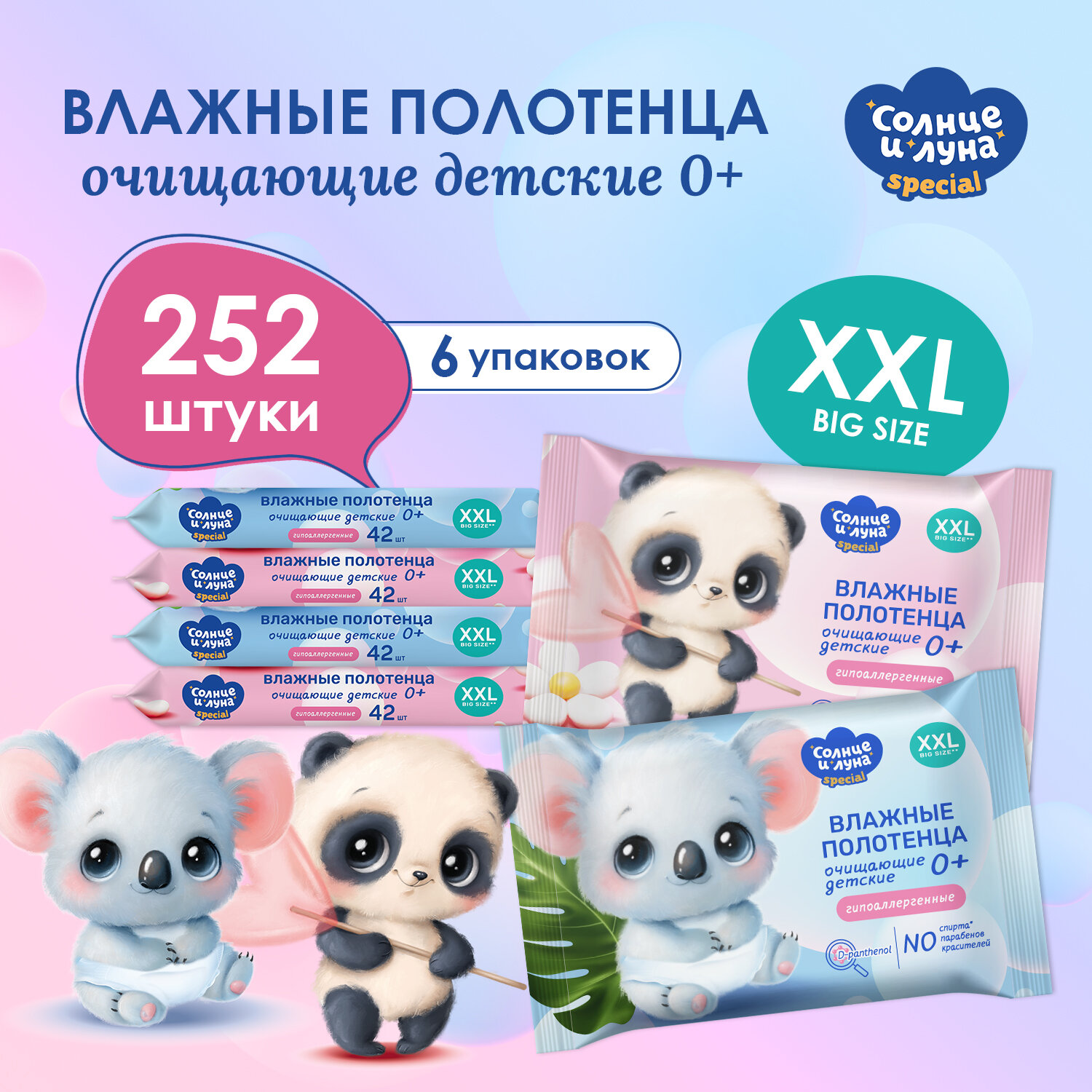 Купить Влажные полотенца детские очищающие 252 шт (42 шт х 6), солнце И луна SPECIAL