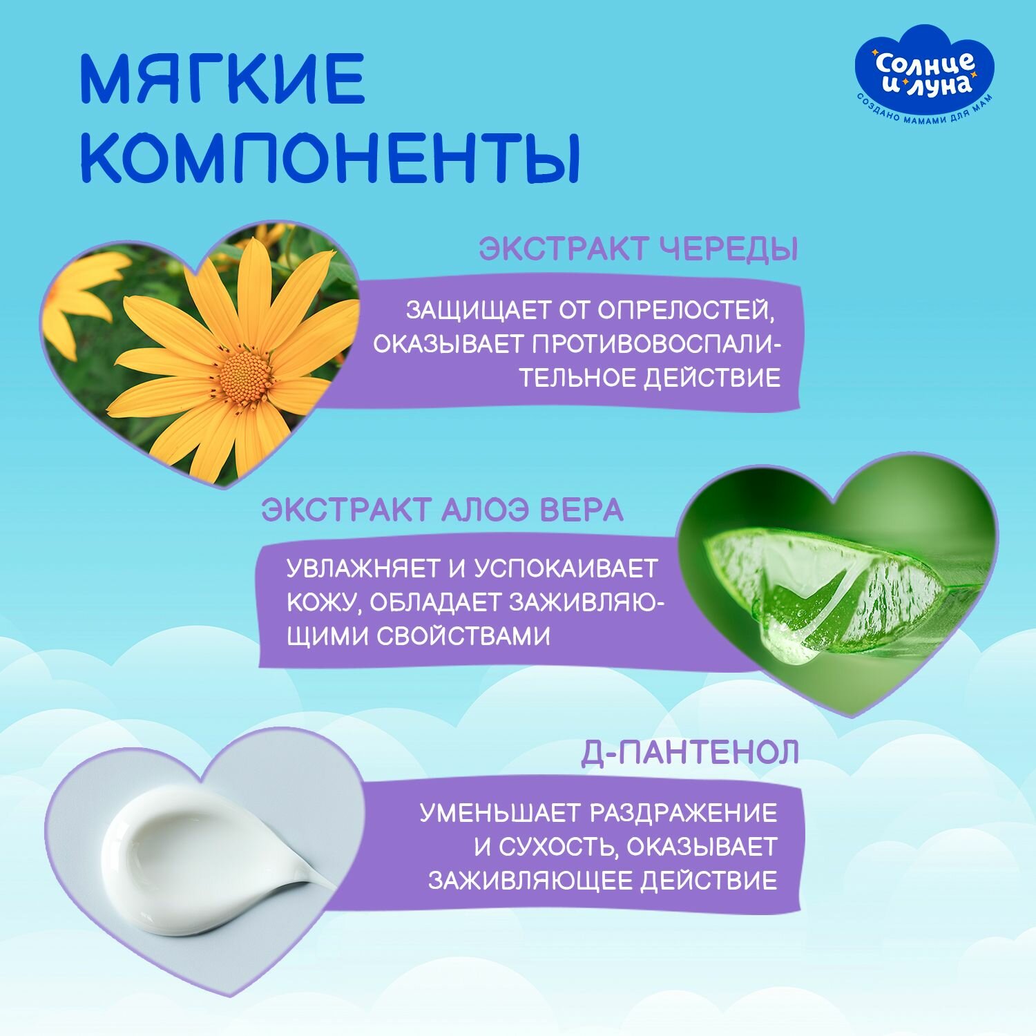 Влажная туалетная бумага детская гипоаллергенная, экстракт череды, алоэ и Д-пантенол 216 шт (72 шт х 3) солнце И луна