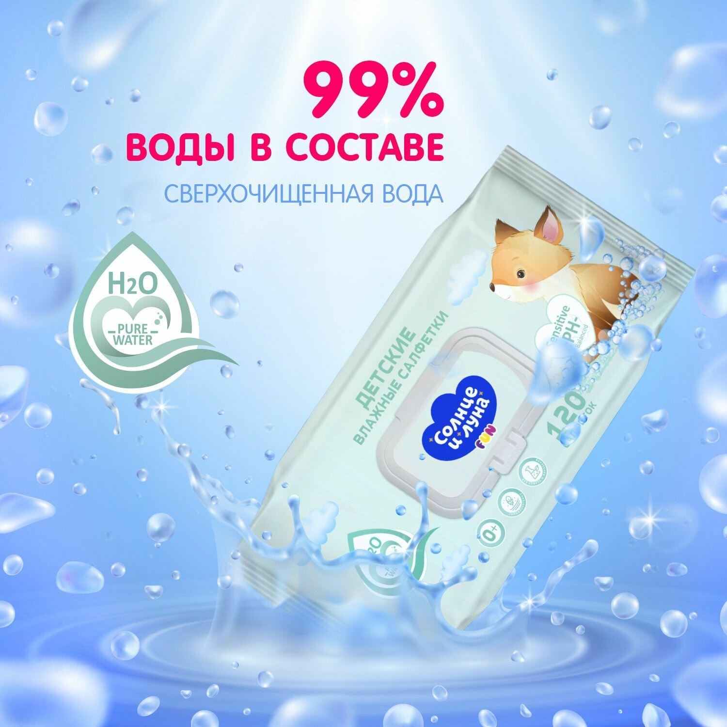 Влажные салфетки детские с крышкой 360 шт (120 шт х 3), солнце И луна