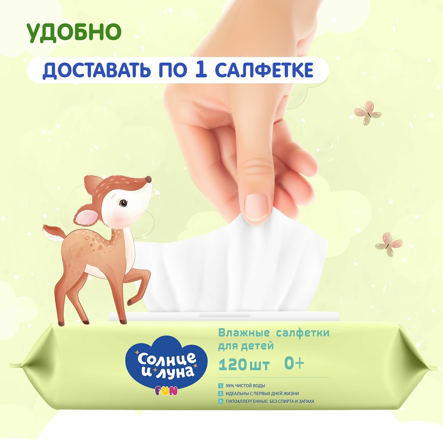 Влажные салфетки детские с крышкой 360 шт (120 шт х 3), солнце И луна