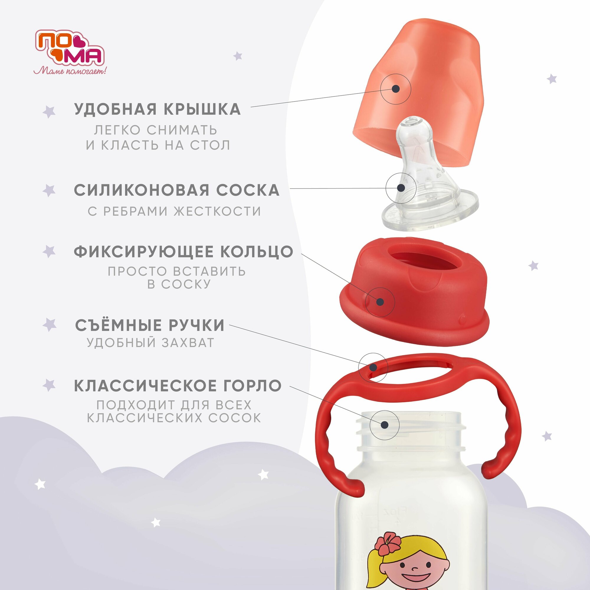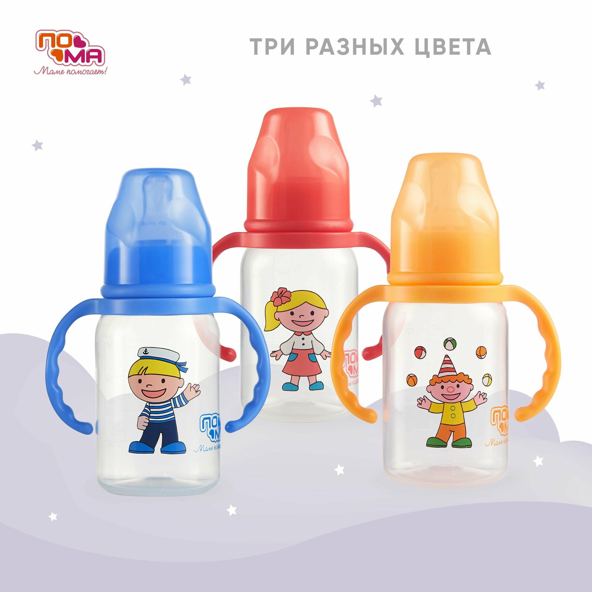 Бутылочка «ПоМа» с ручками с силиконовой соской со средним потоком с 4 мес., 140 мл