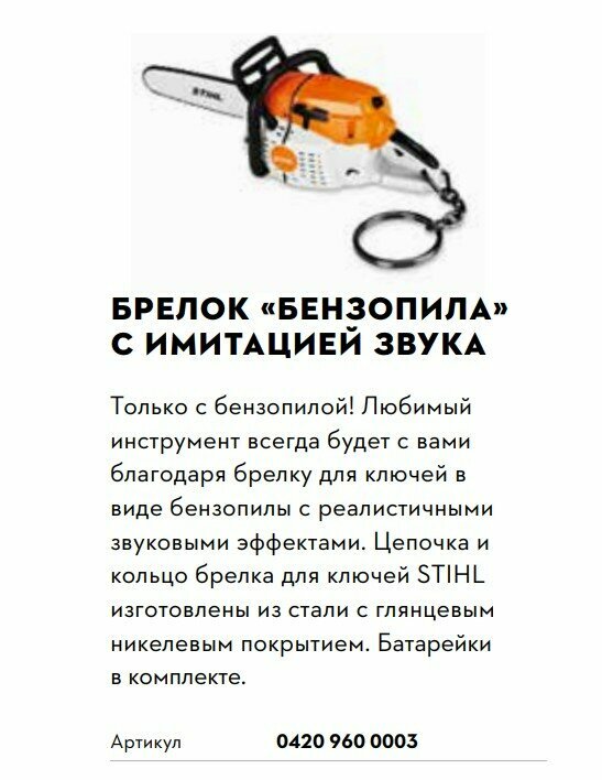 STIHL Брелок, подвеска, бензопила с имитацией звука, 04209600003 интересное: