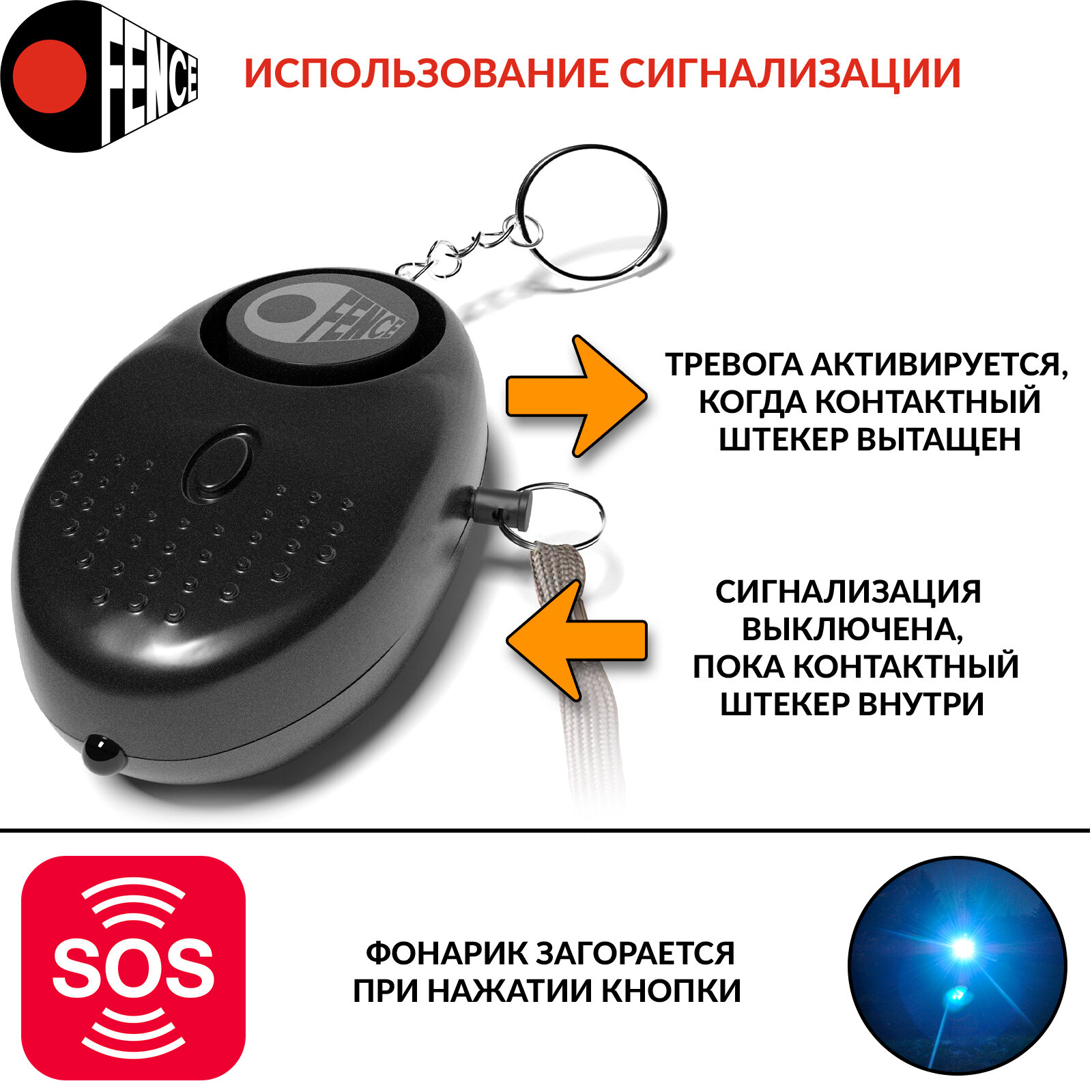 Персональная сигнализация-брелок D-Fence 140 дБ со встроенным LED фонариком - Используется как карманная сирена для самообороны интересное: