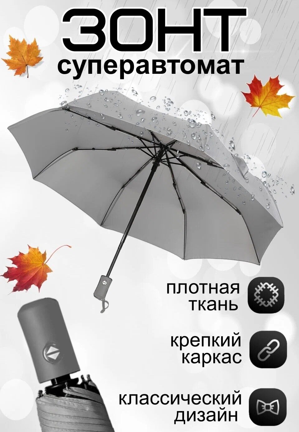 Смарт-зонт, мини зонт автомат, 3 сложения, купол 98 см., 8 спиц, обратное сложение, система «антиветер», чехол в комплекте, серый интересное: