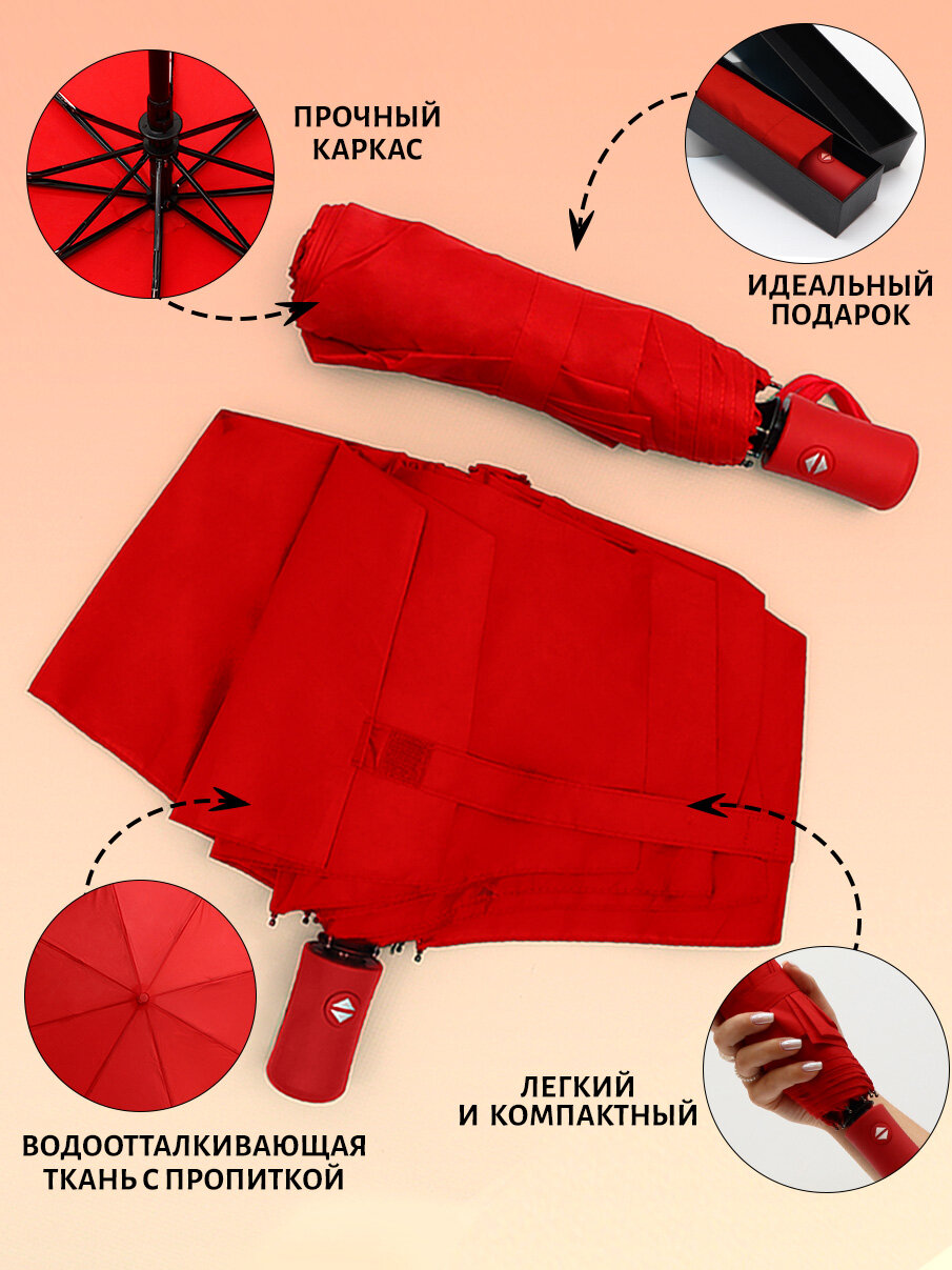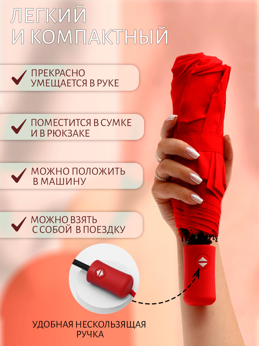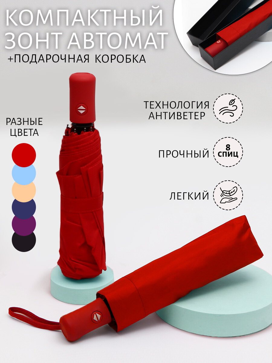 Зонт Автоматический Складной (красный) / полный автомат, антиветер, маленький, карманный, женский в сумочку, мужской