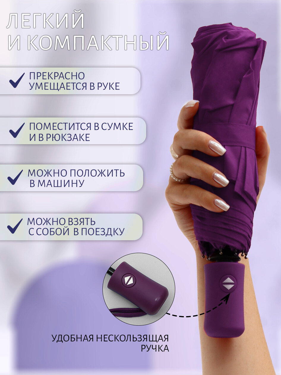 Купить Зонт Автоматический Складной (фиолетовый) эврика / автомат, маленький, карманный, женский в сумочку, мужской