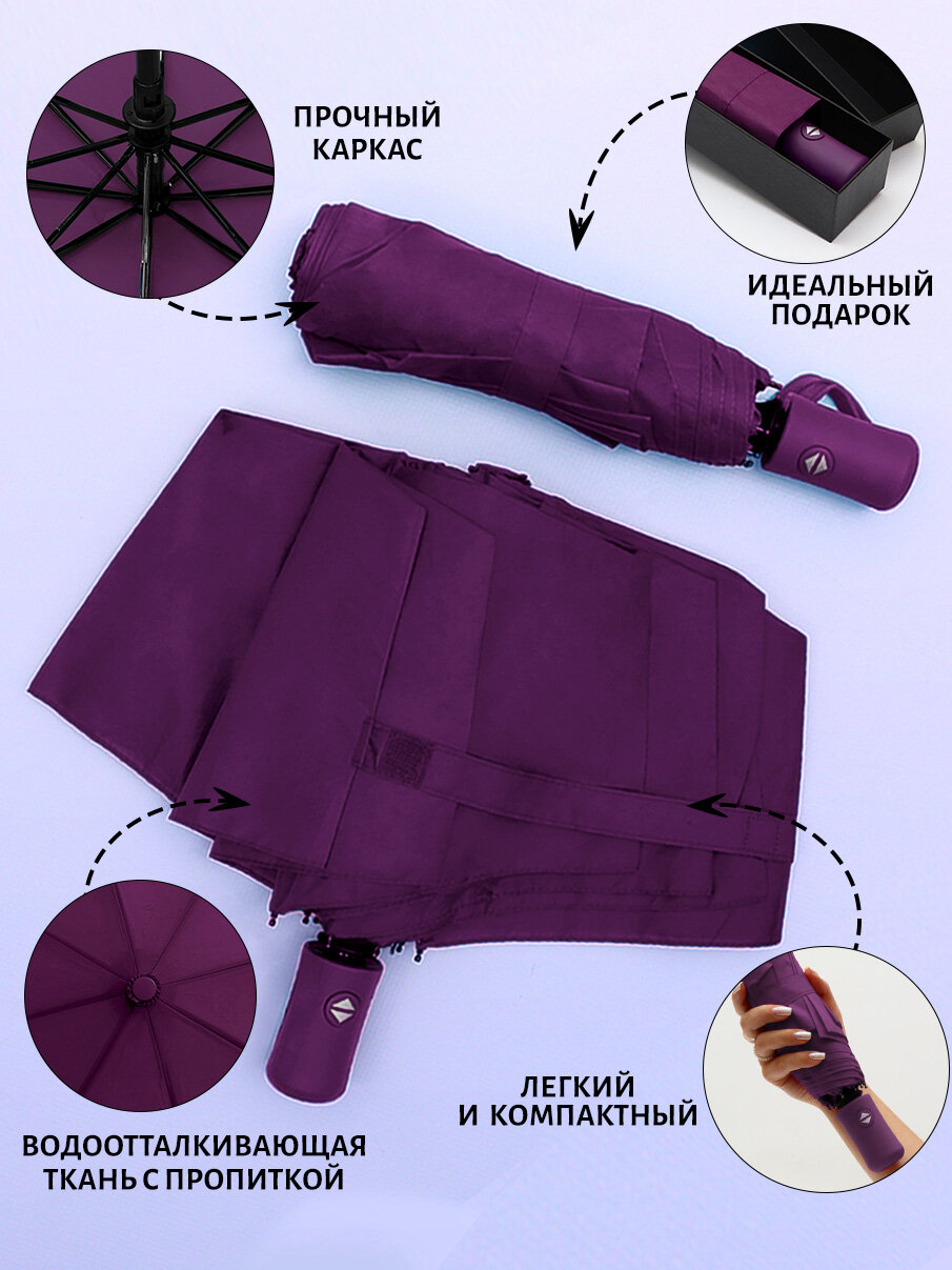 Зонт Автоматический Складной (фиолетовый) / полный автомат, антиветер, маленький, карманный, женский в сумочку, мужской