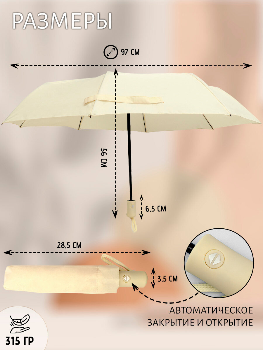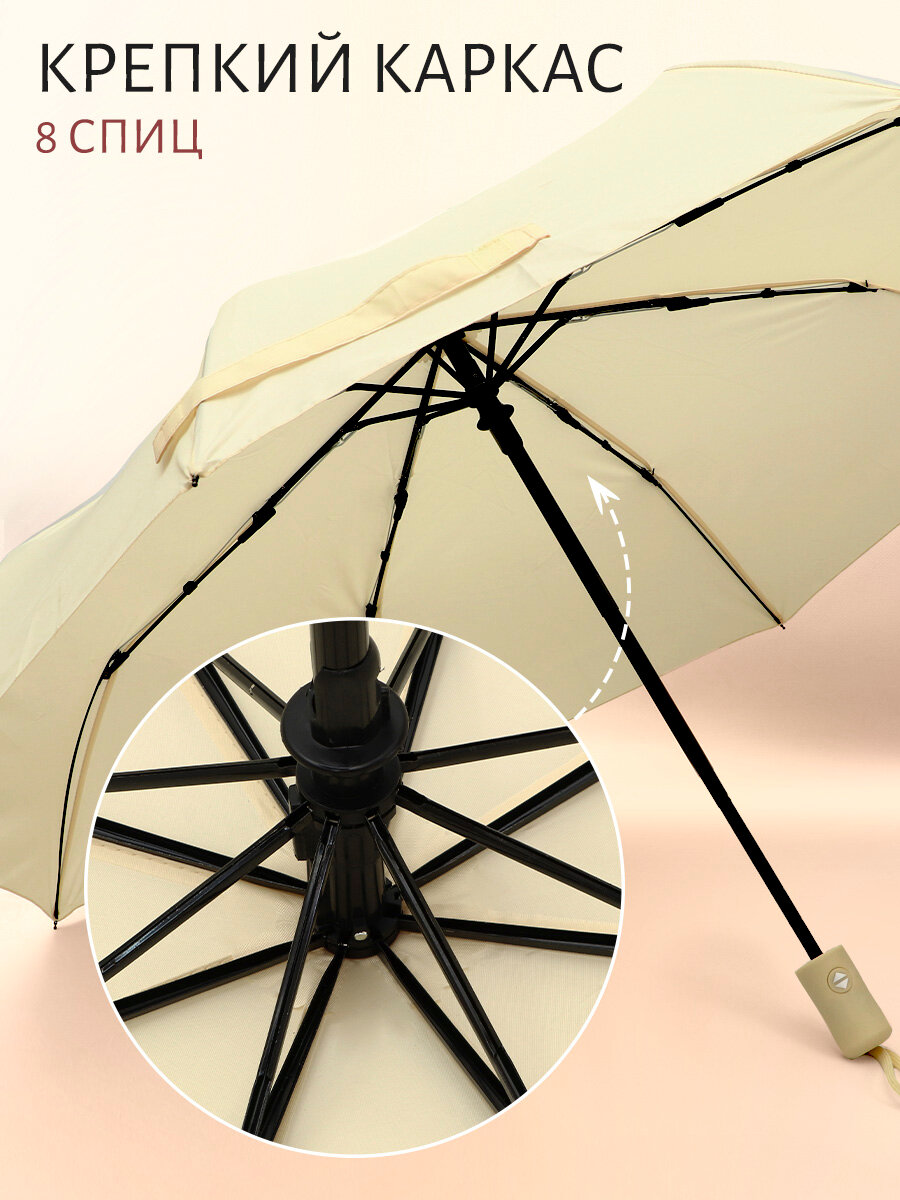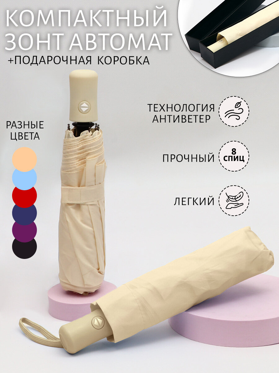 Зонт Автоматический Складной (бежевый) / полный автомат, антиветер, маленький, карманный, женский в сумочку, мужской