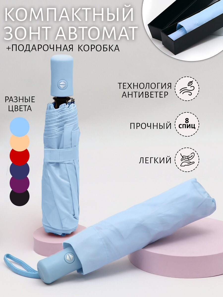 Зонт Автоматический Складной (голубой) / полный автомат, антиветер, маленький, карманный, женский в сумочку, мужской
