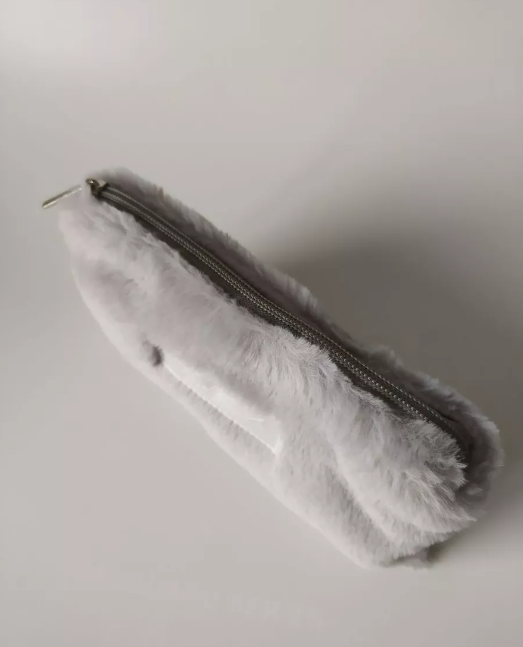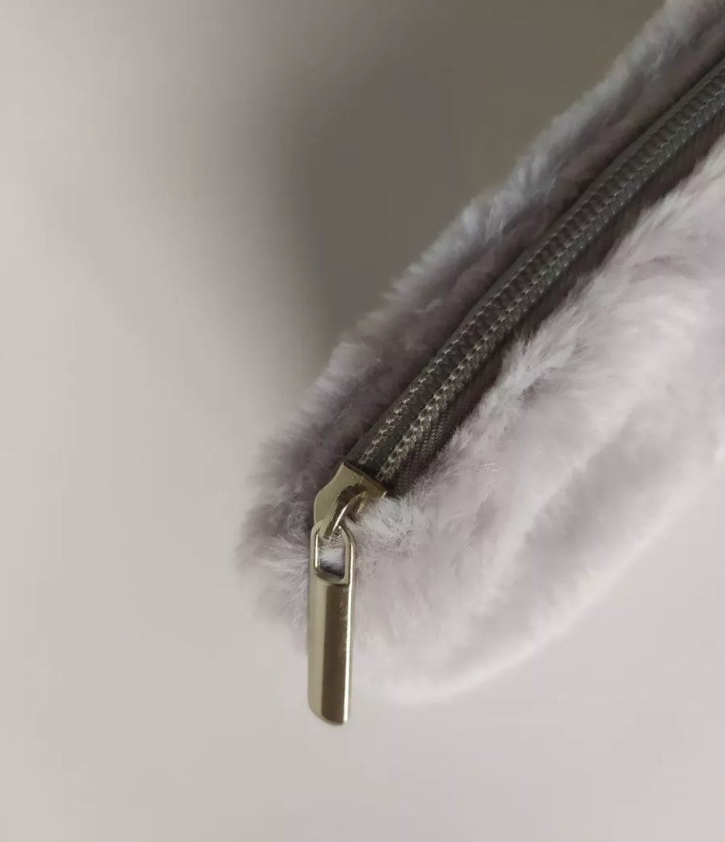Косметичка пушистая, змейка серая