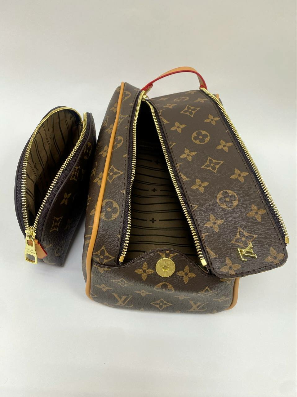 Купить Косметичка женская дорожная + маленькая косметичка в подарок. Коричневый оригинальный рисунок LV