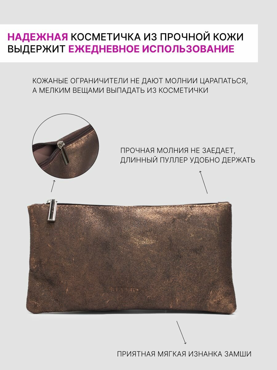 Косметичка натуральная кожа на молнии клатч кожаный , Reversal , 8856R_Кофе-золото интересное: