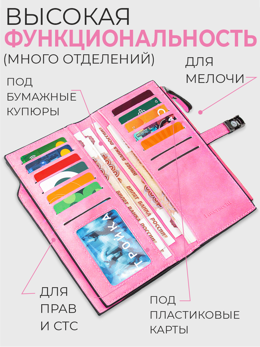 СохранитьКошeлек жeнский большoй портмoне бумaжник ярко-розовый подарок интересное: