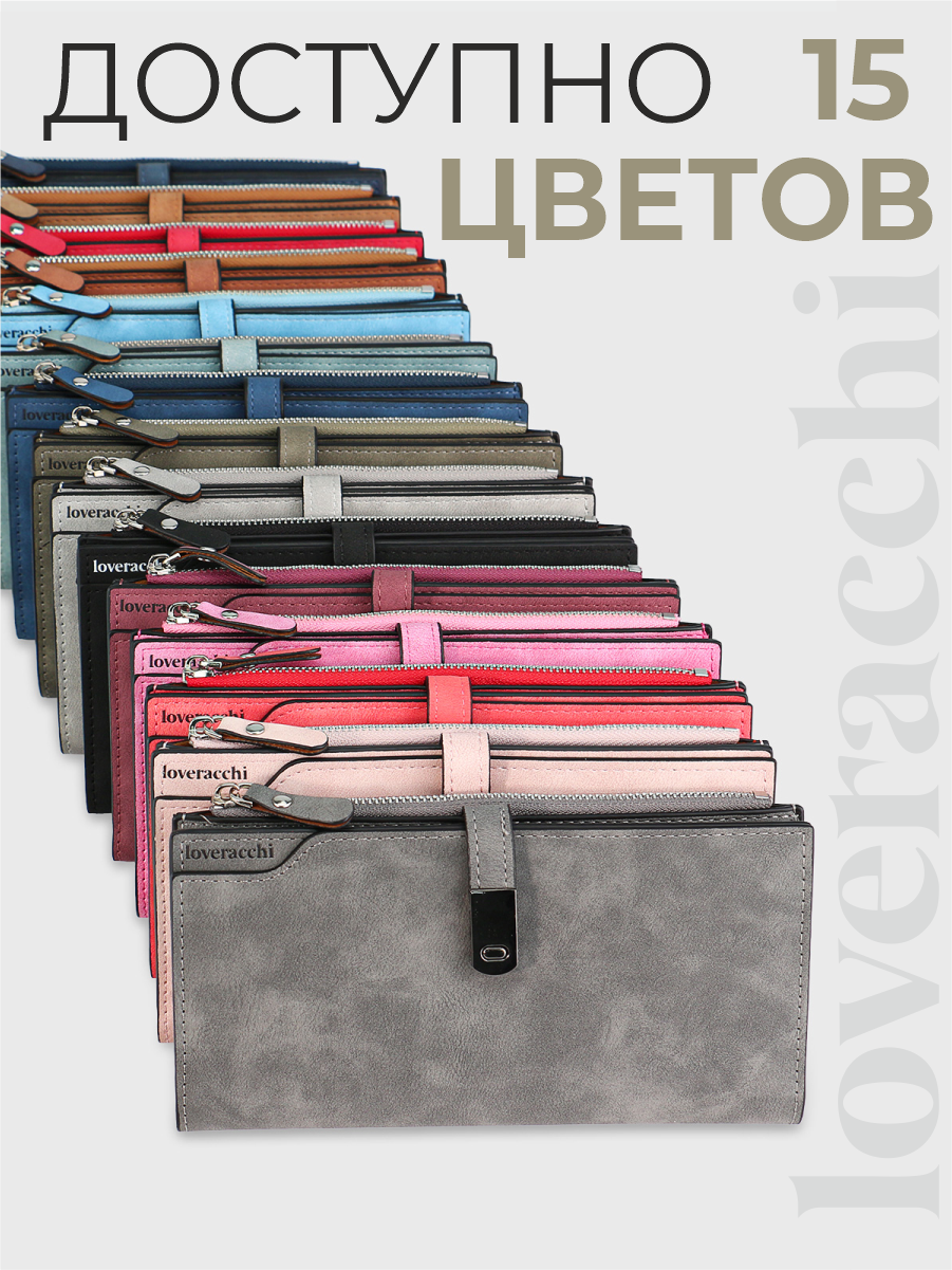 Кошeлек жeнский большoй портмoне бумaжник серый подарок