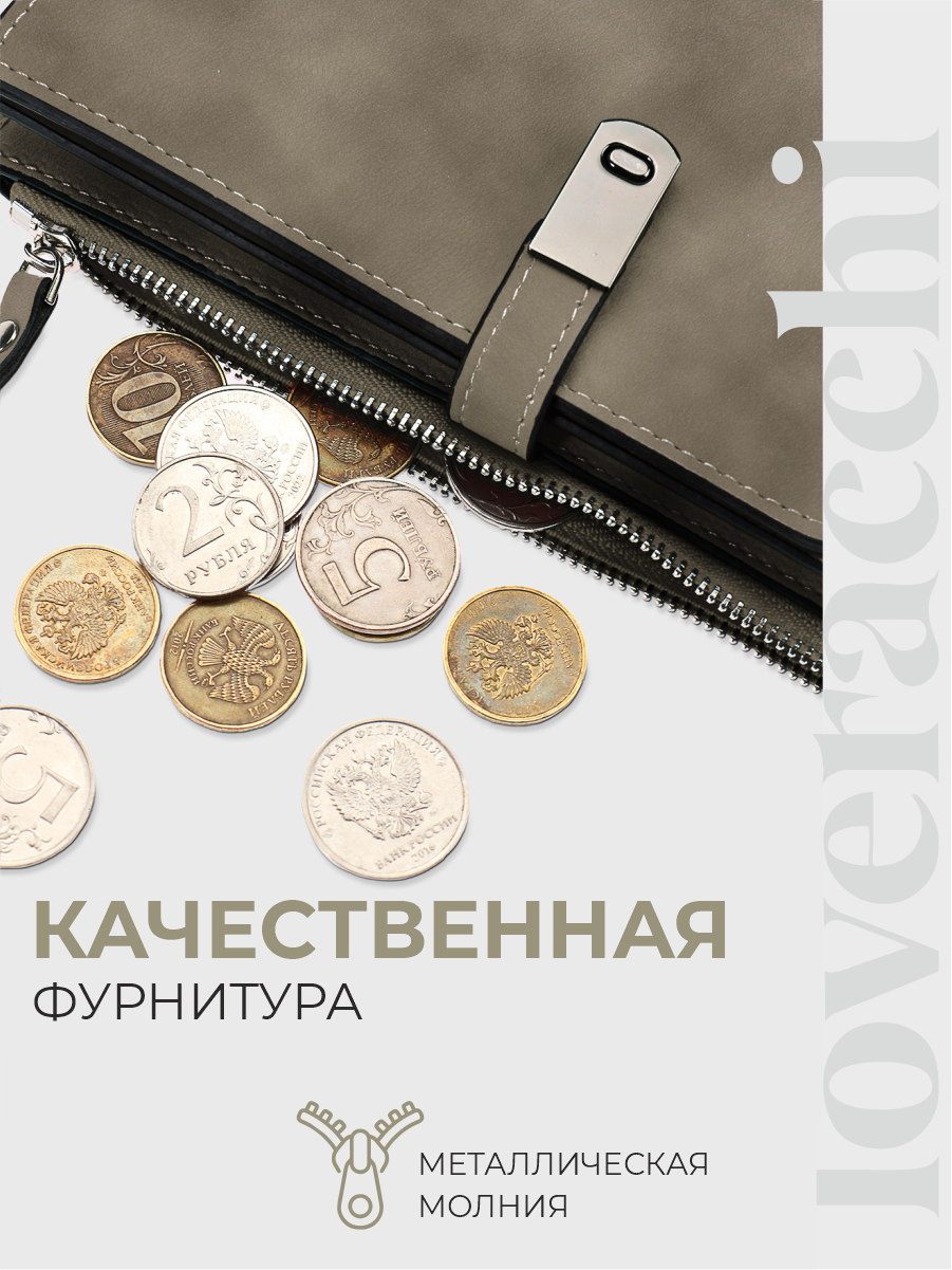 Кошелек loveracchi, фактура гладкая, темно-серый