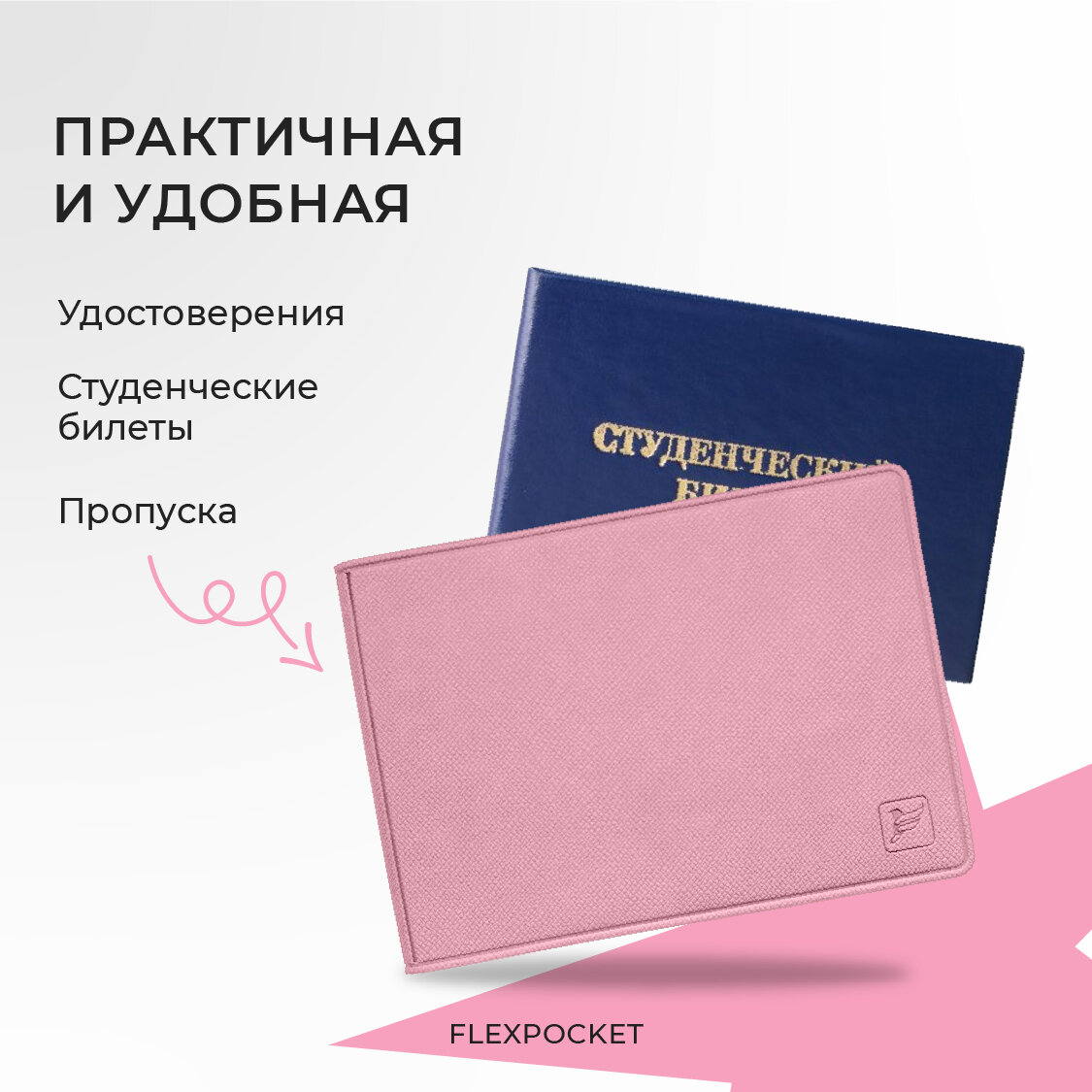 СохранитьОбложка для студенческого билета или удостоверения Flexpocket, цвет Розовый интересное: