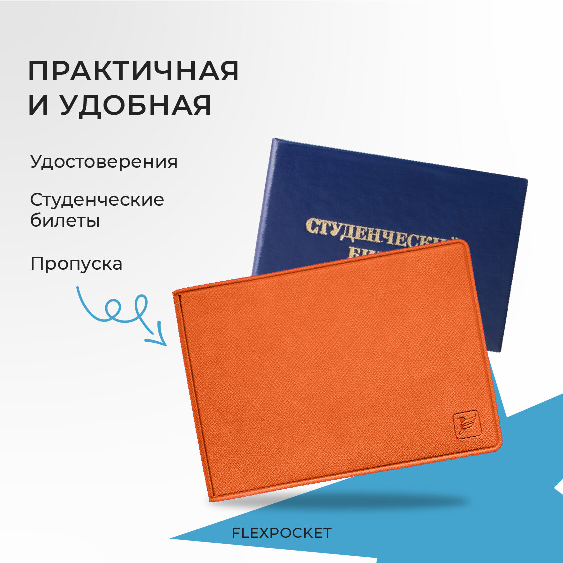Обложка для студенческого билета или удостоверения Flexpocket, цвет Синий