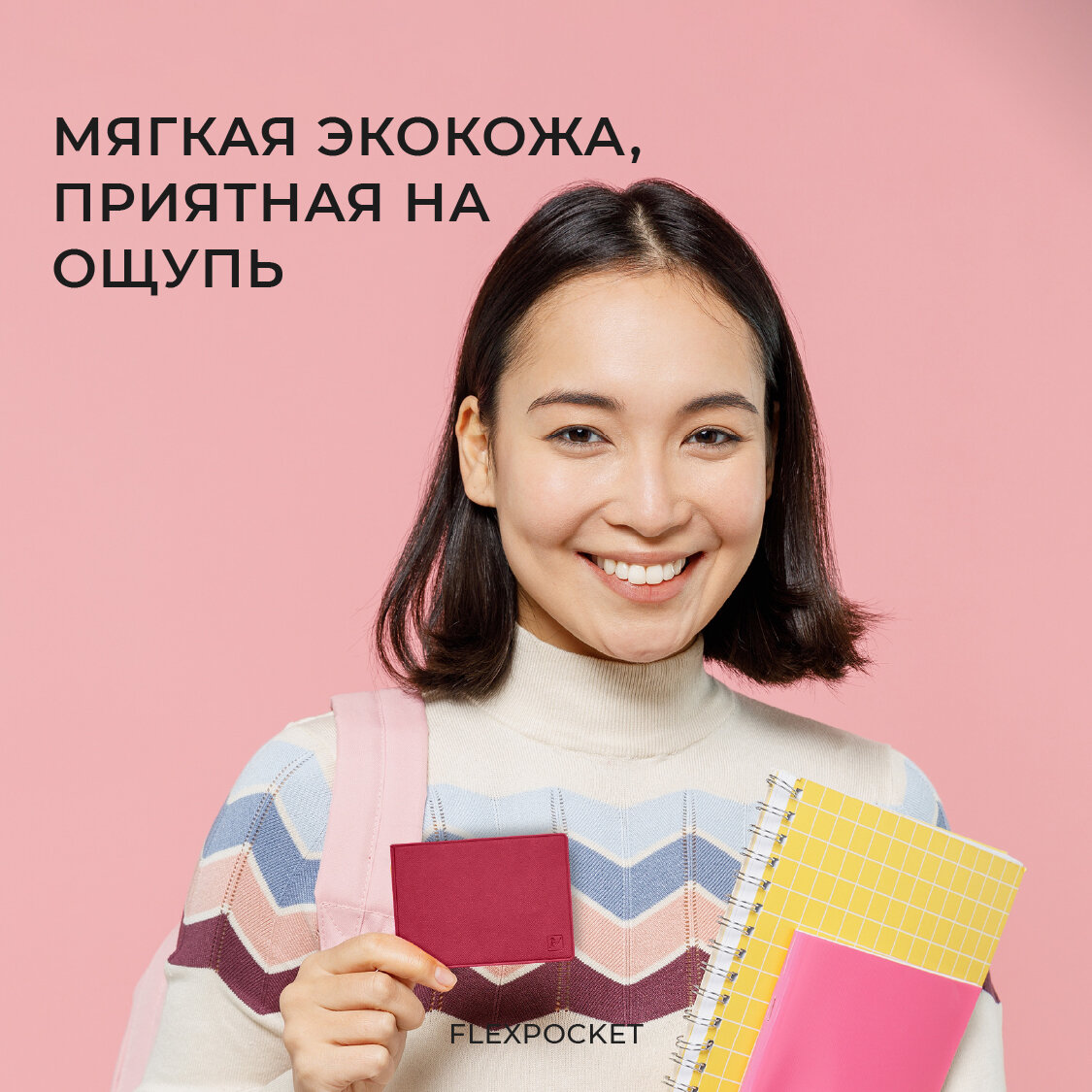 Обложка для студенческого билета или удостоверения Flexpocket, цвет Розовый