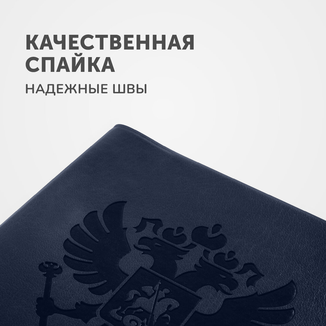Купить Обложка для паспорта Flexpocket из экокожи classic с дополнительными отделениями для документов (СТС, снилс, права), цвет темно-синий с гербом