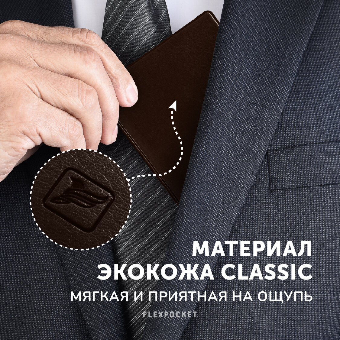 СохранитьОбложка для паспорта Flexpocket из экокожи classic с дополнительными отделениями для документов (СТС, снилс, права), цвет коричневый интересное: