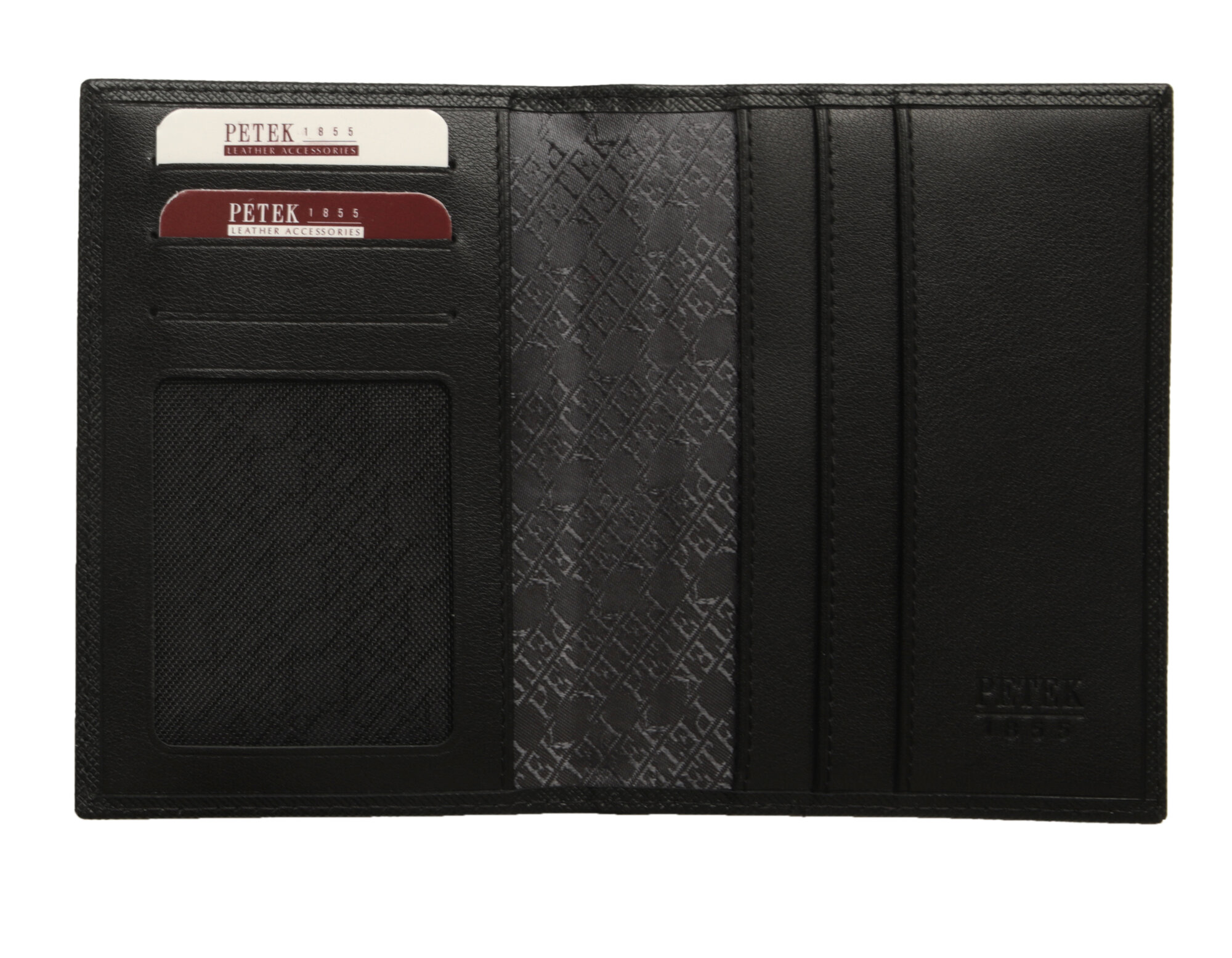 Обложка-карман для паспорта Petek 1855, черный/зернистый/глянец