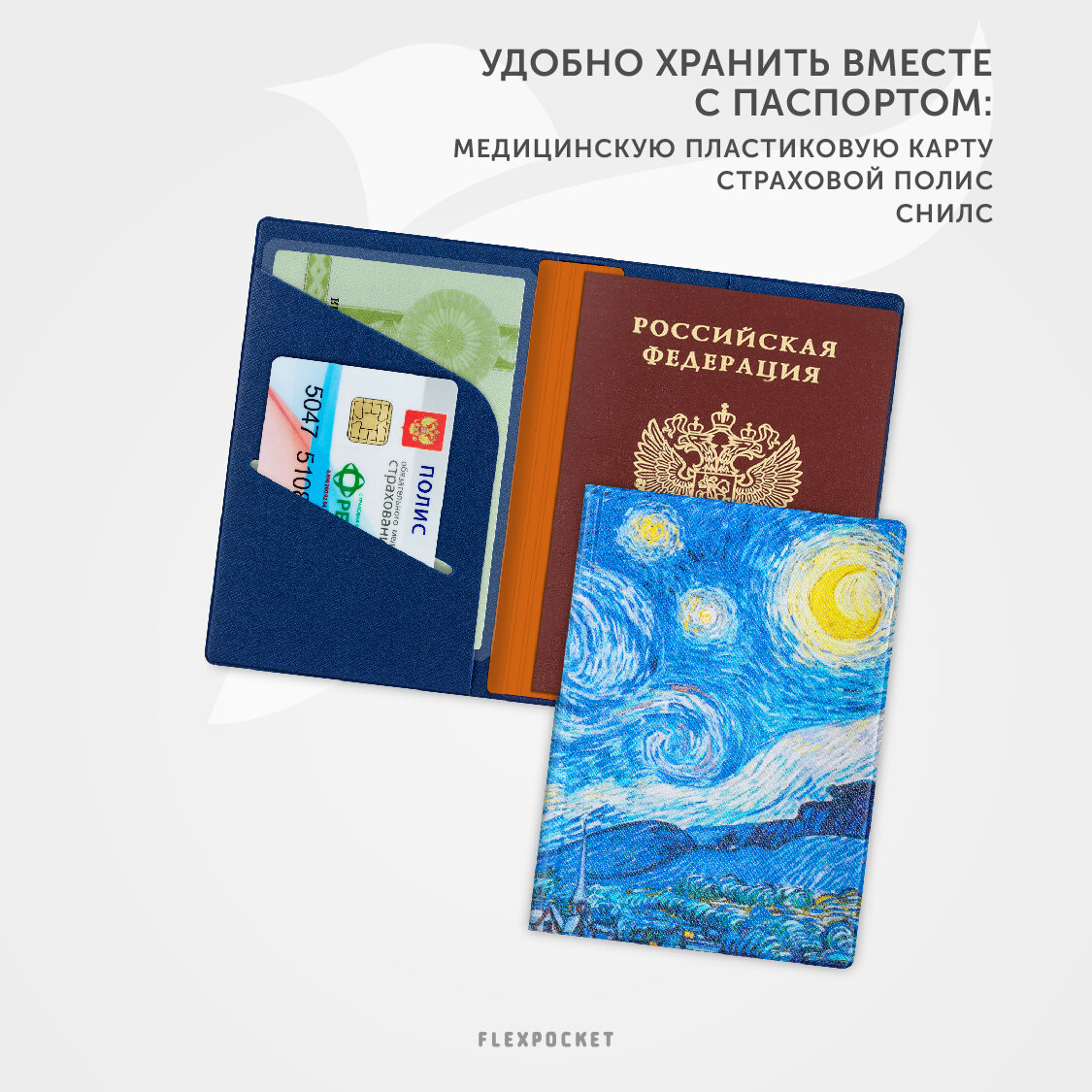 | Дополнительная информация | Обложка для паспорта Flexpocket загранпаспорта с отделениями для автодокументов, СТС, прав, Экокожа |