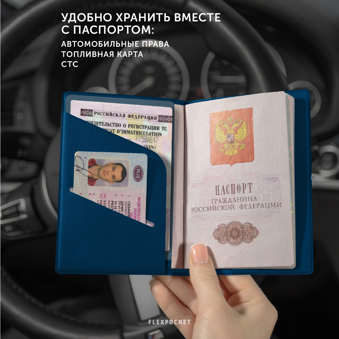 | Дополнительная информация | Обложка для паспорта Flexpocket загранпаспорта с отделениями для автодокументов, СТС, прав, Экокожа |