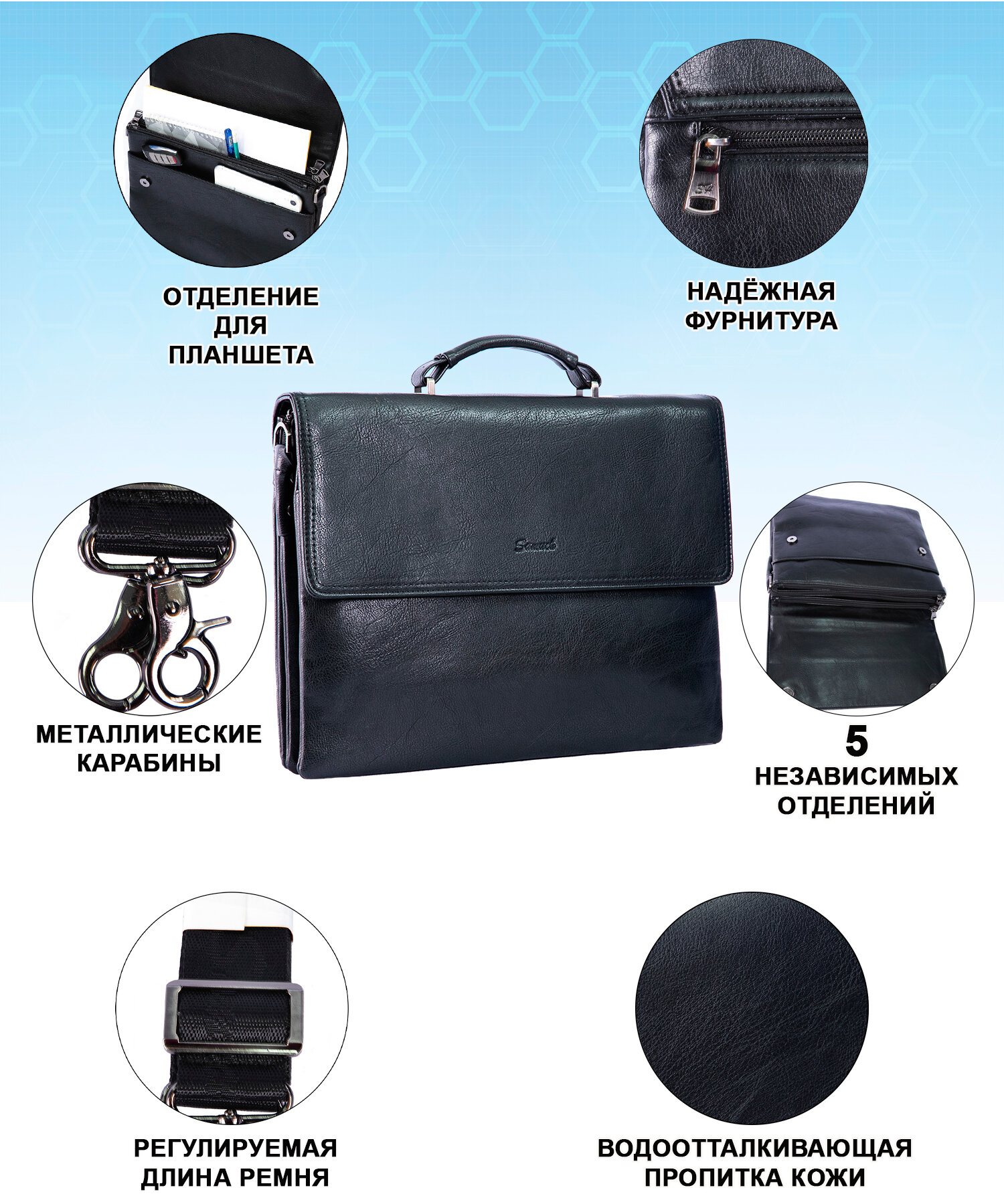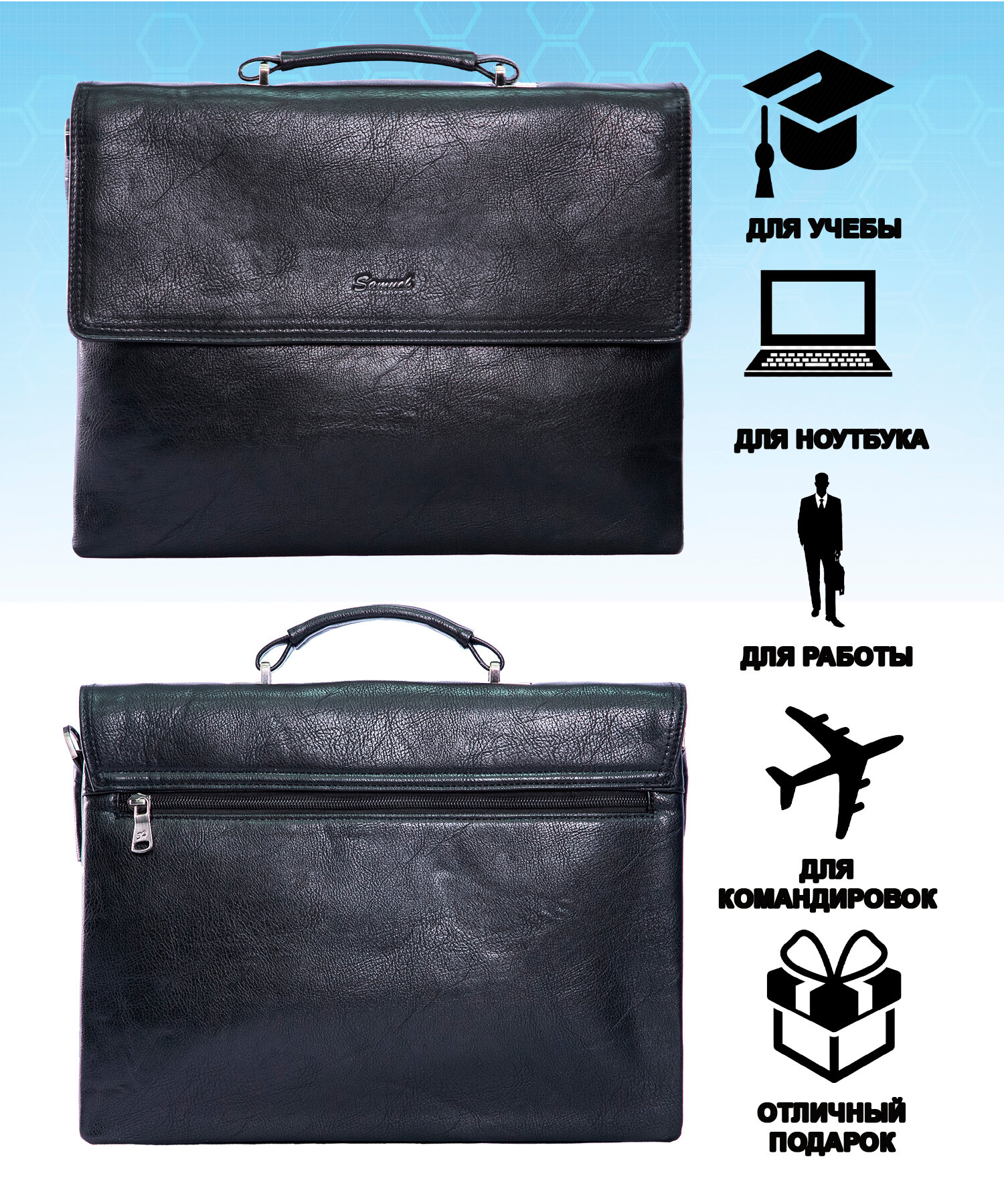 Портфель мужской SOMUCH черный А4 для офиса 26*35*5 интересное: