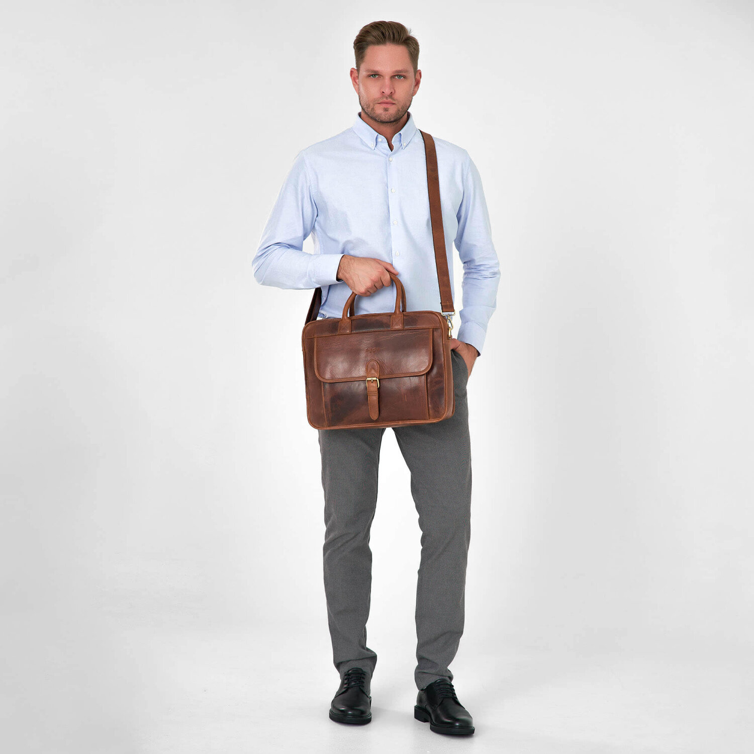 Портфель Igermann, фактура матовая, коричневый
