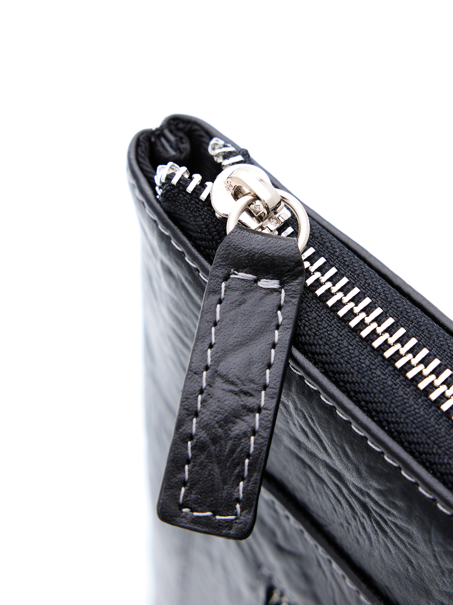 Папка из натуральной кожи под крокодила на молнии, черная, уголок, мягкая, деловая, для работы, для учёбы, Franchesco Mariscotti 8-134