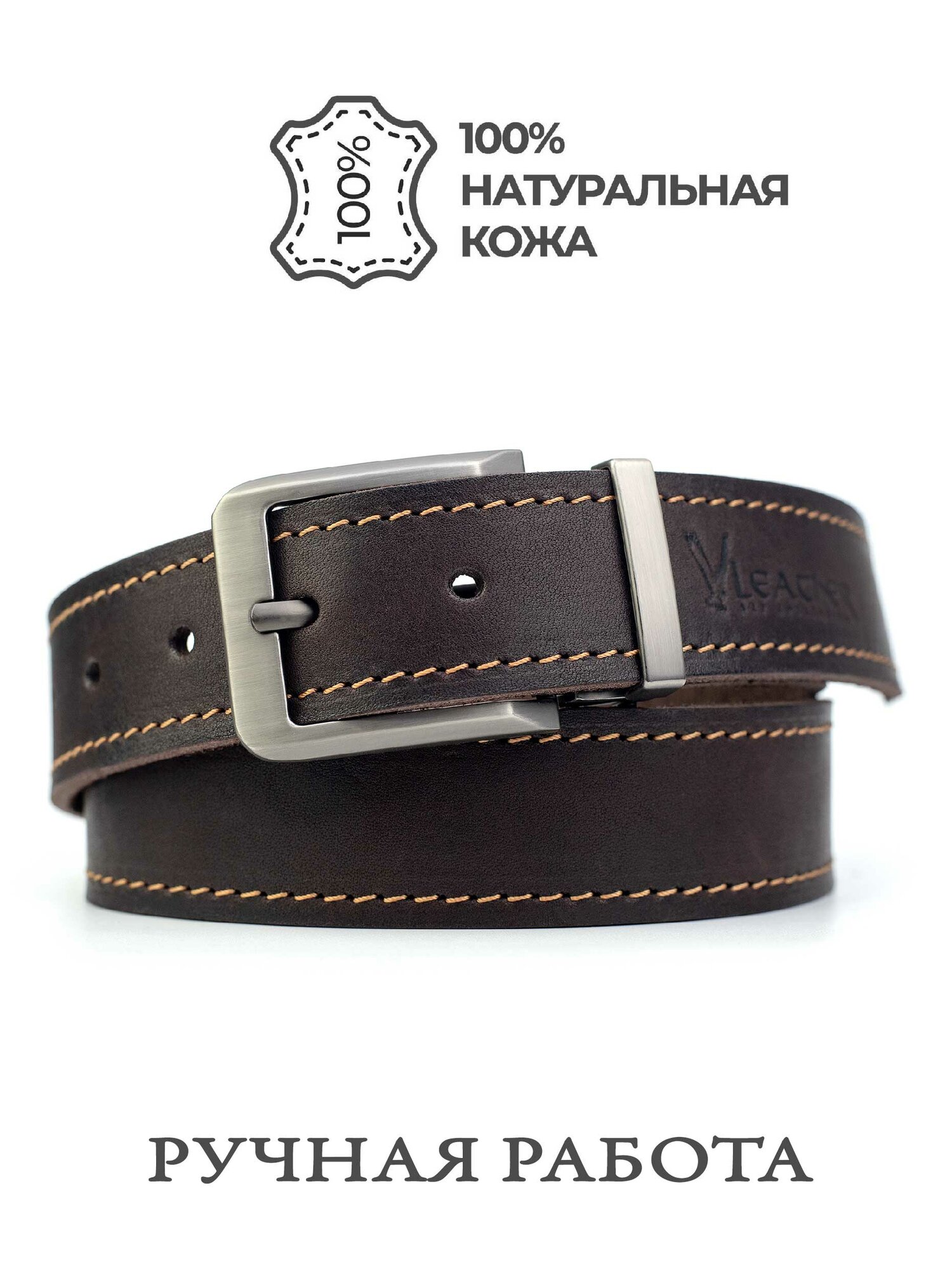 Ремень 120 см натуральная кожа с классической металлической пряжкой. Кожаный аксессуар для мужчин и женщин в подарок на День рождения, 14 и 23 февраля. Ручная работа.