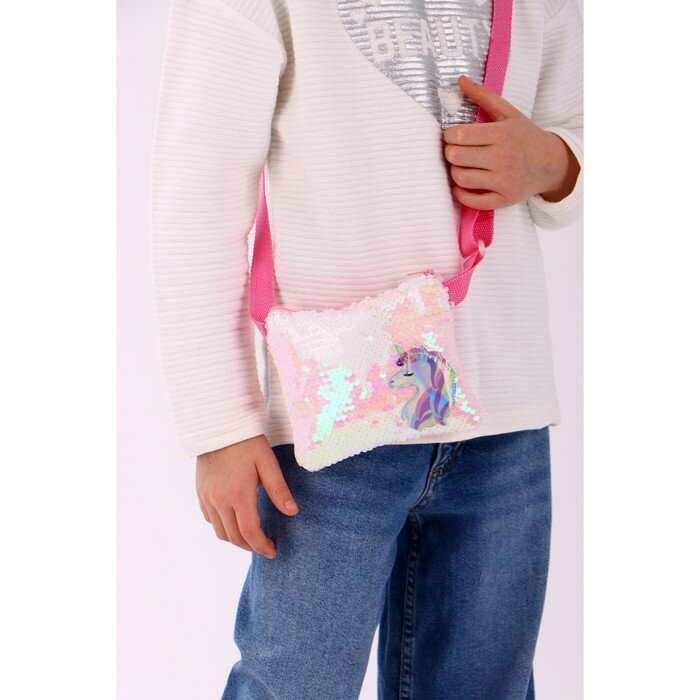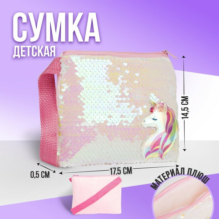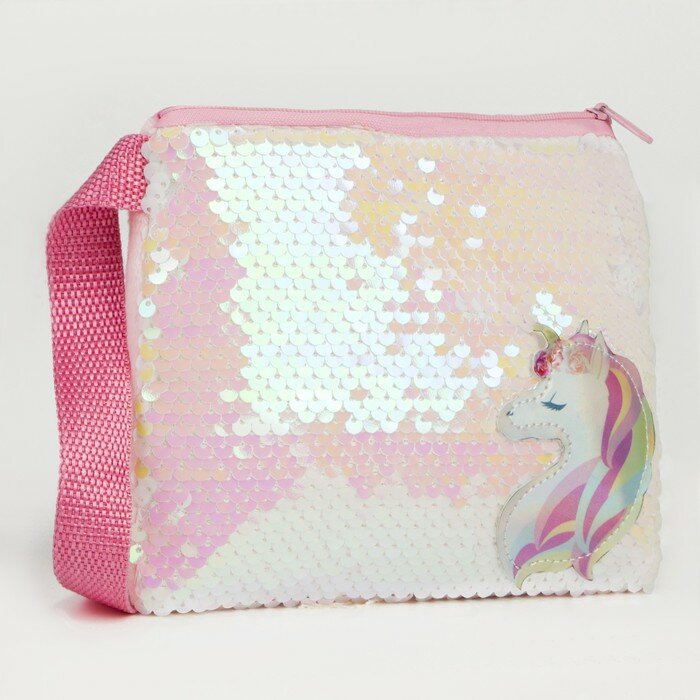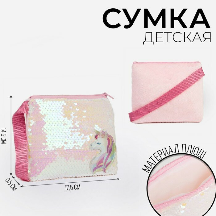 NAZAMOK KIDS Сумка детская для девочки «Единорог», отдел на молнии, с пайетками, цвет розовый