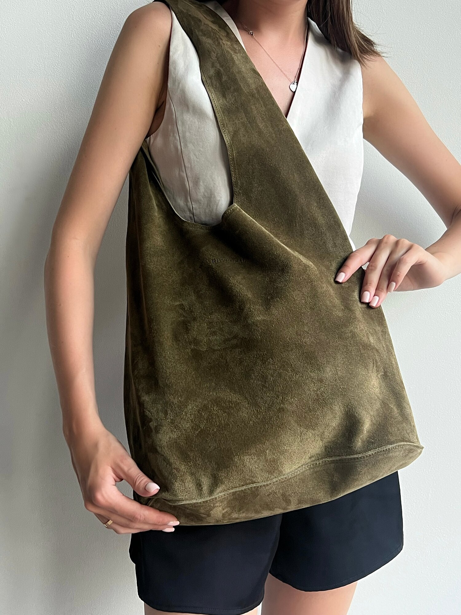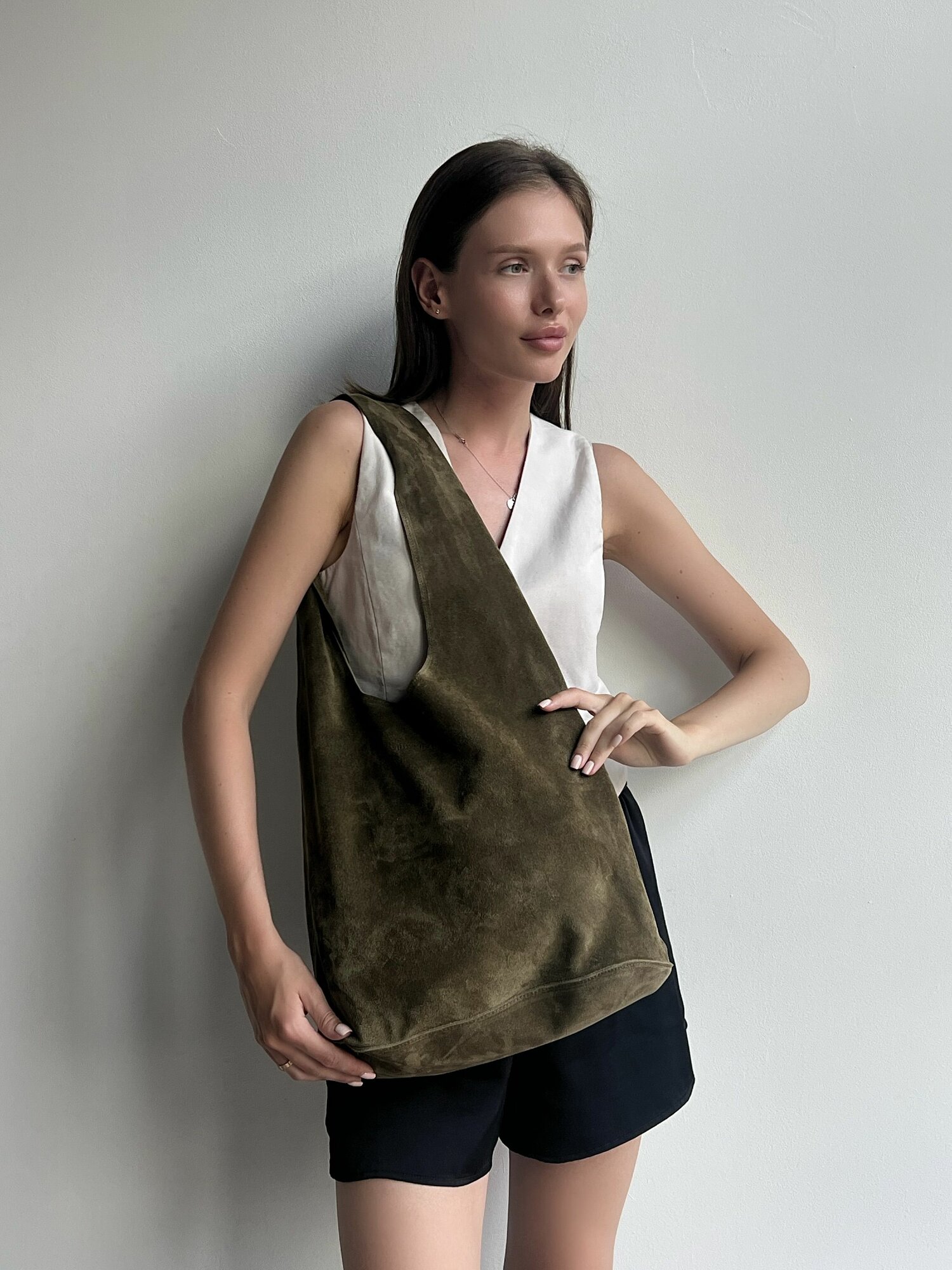 Купить Шоппер натуральная кожа сумка большая кожаная на плечо, Reversal, 8878_Хаки