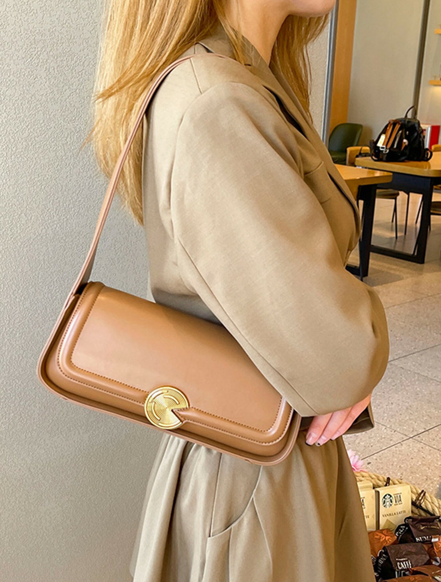 Сумка багет Evangelina May, фактура гладкая, коричневая