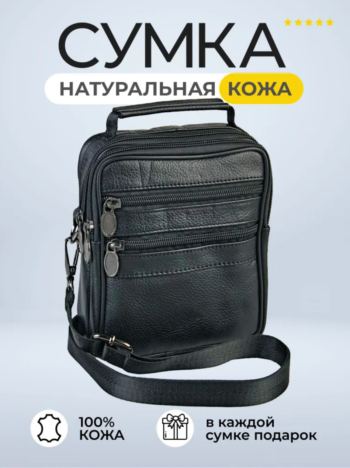 Сумка-барсетка мужская BAREZ из натуральной кожи с плечевым ремнем (черная) интересное: