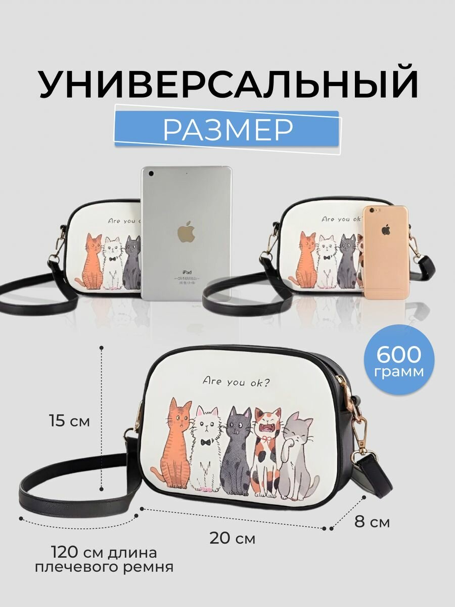 Купить Сумка женская через плечо с котиками Beibaobao , маленькая черная