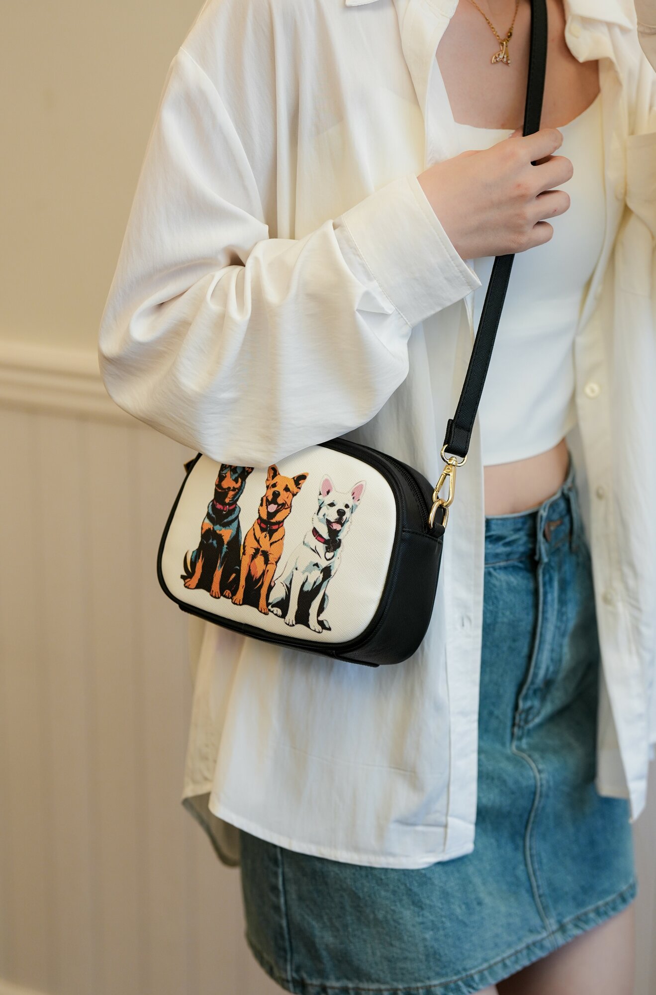 Сумка женская через плечо с собачками Beibaobao маленькая интересное: