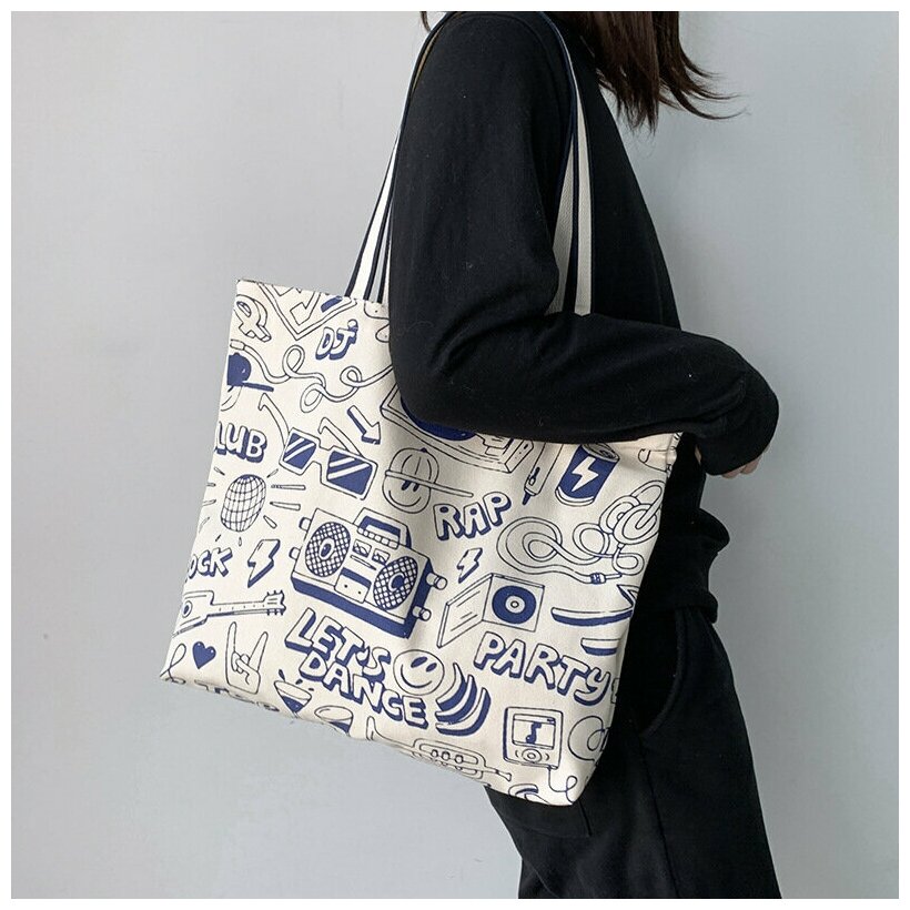 Сумка-шоппер Bag&You на молнии "Music" бежево-синий интересное: