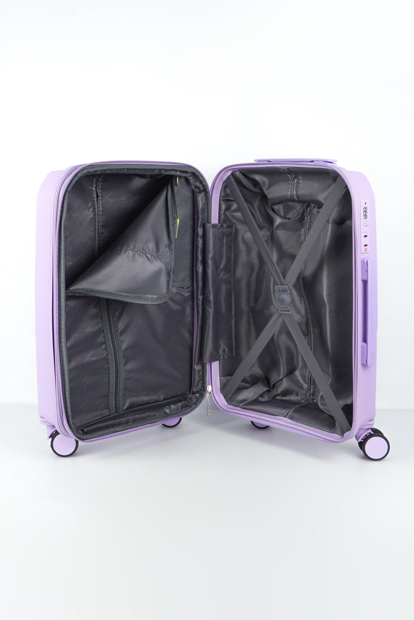 Чемодан Sweetbags средний из полипропилена на 4-х съемных колесах с расширением с кодовым замком (Flash) сиреневый M+
