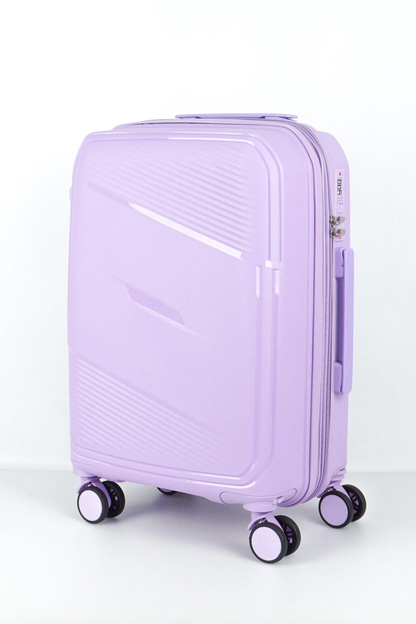 Купить Чемодан Sweetbags маленький (ручная кладь) из полипропилена на 4-х съемных колесах с расширением с кодовым замком (Flash) сиреневый S