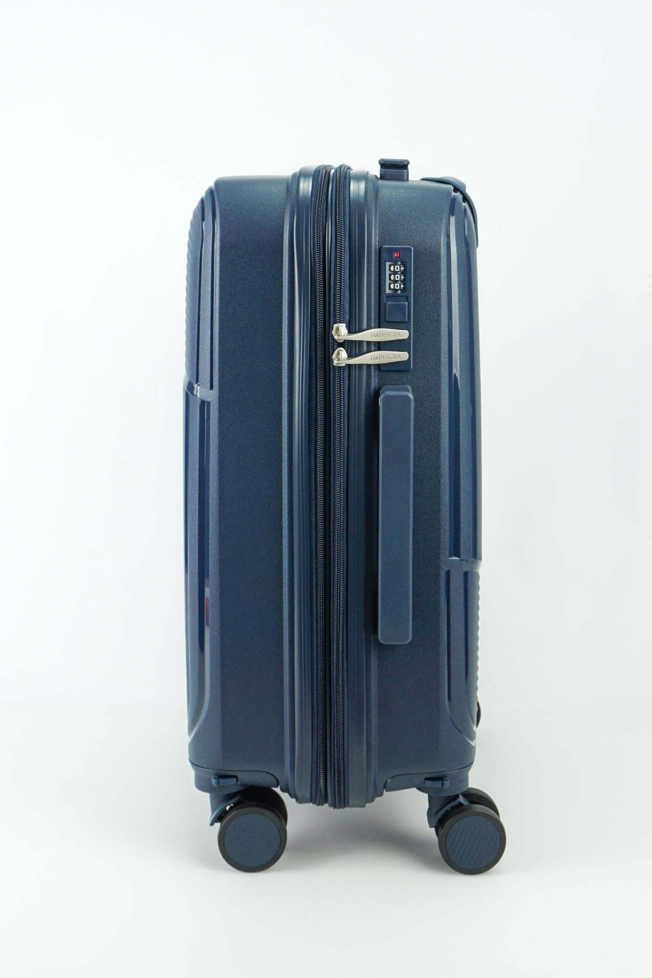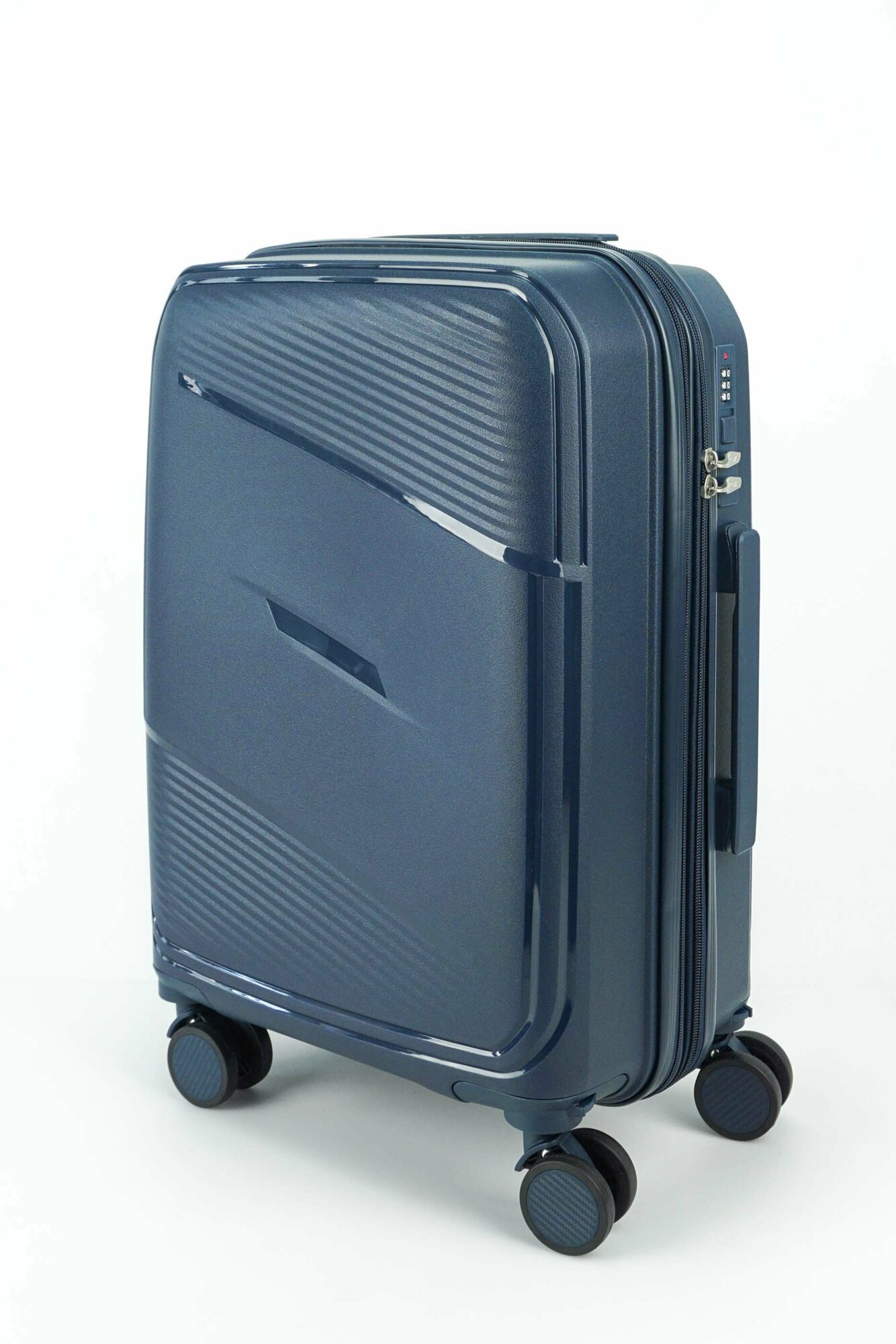 Купить Чемодан Sweetbags маленький (ручная кладь) из полипропилена на 4-х съемных колесах с расширением с кодовым замком (Flash) темно-синий S
