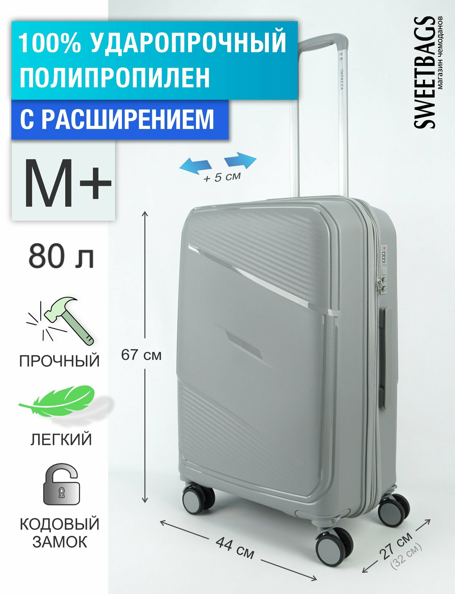 Купить Чемодан Sweetbags средний из полипропилена на 4-х съемных колесах с расширением с кодовым замком (Flash) светло-серый M+