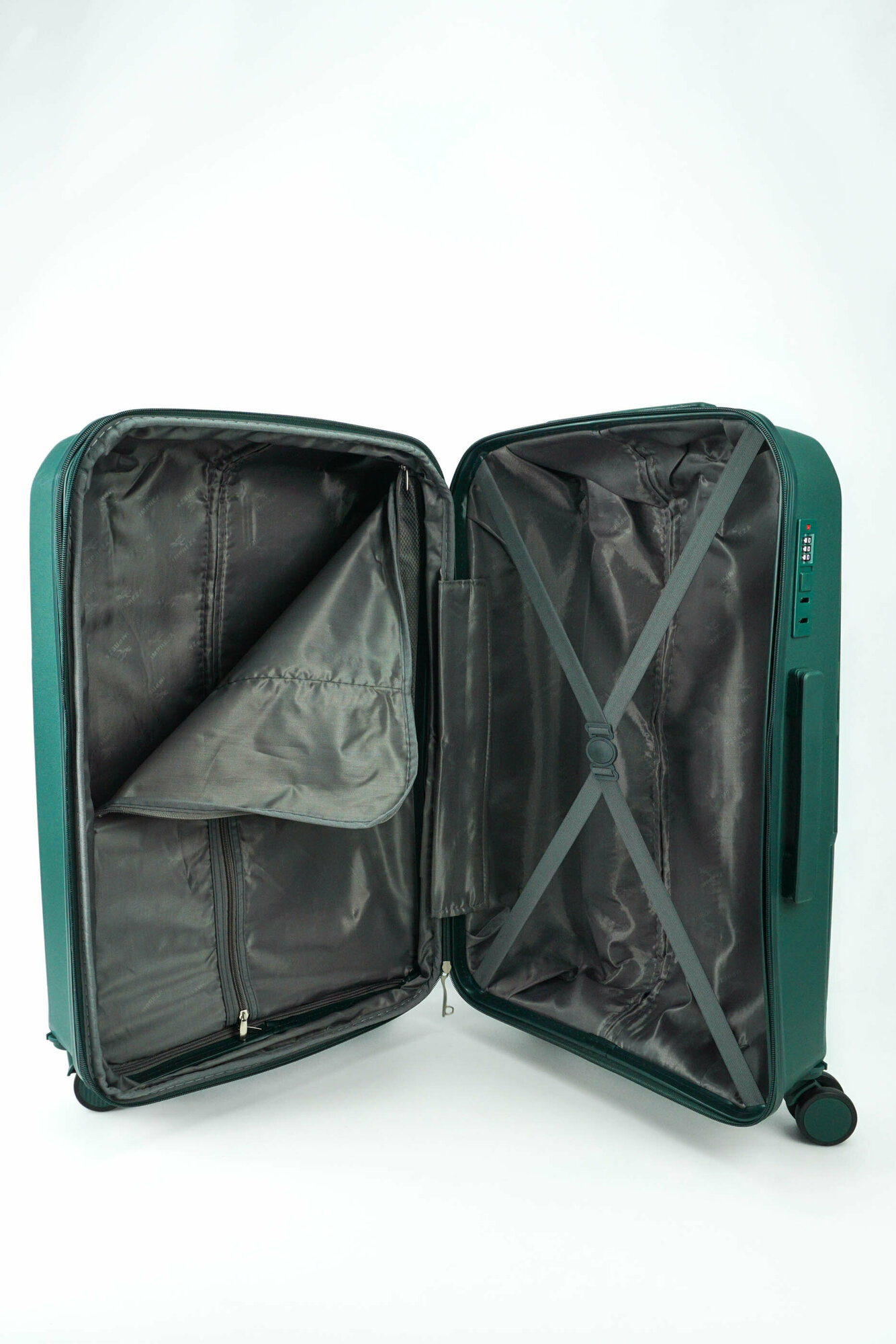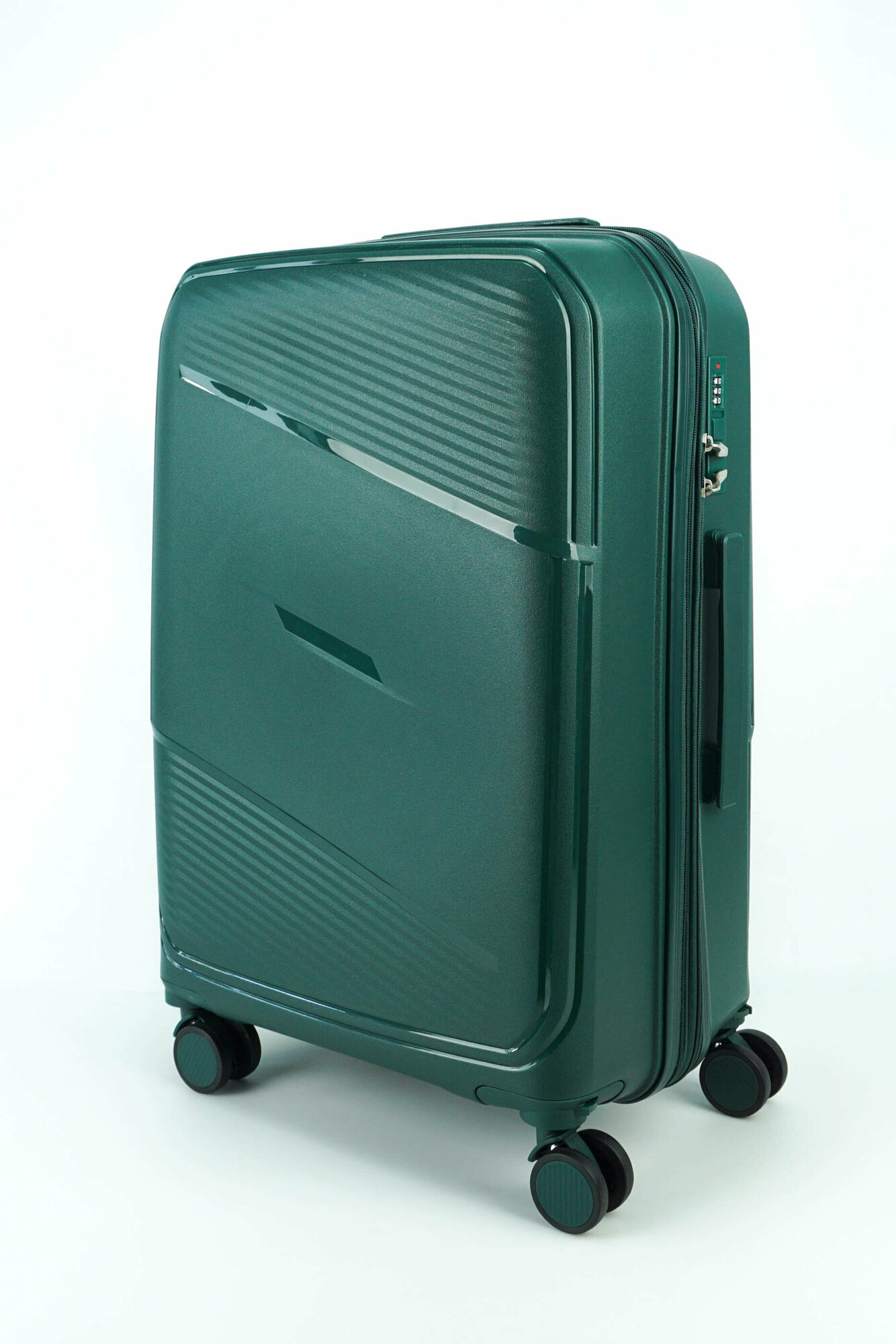 Купить Чемодан Sweetbags средний из полипропилена на 4-х съемных колесах с расширением с кодовым замком (Flash) темно-зеленый M+