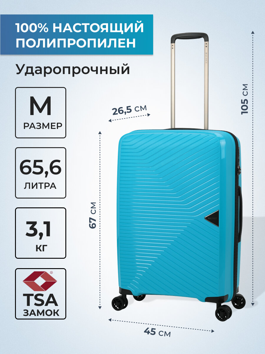 Купить Чемодан на колесах BAUDET 812-67 (голубой/черный) M-средний, из полипропилена, 65,6 л