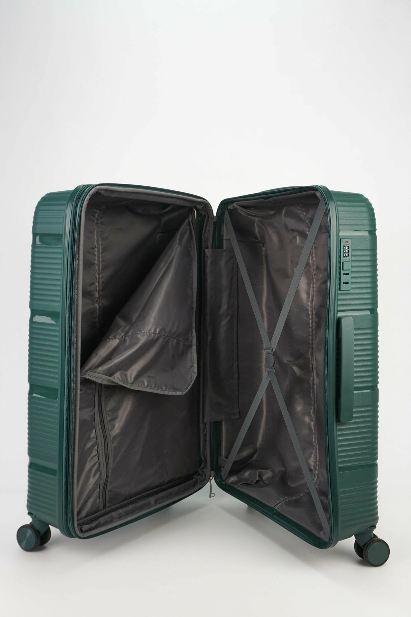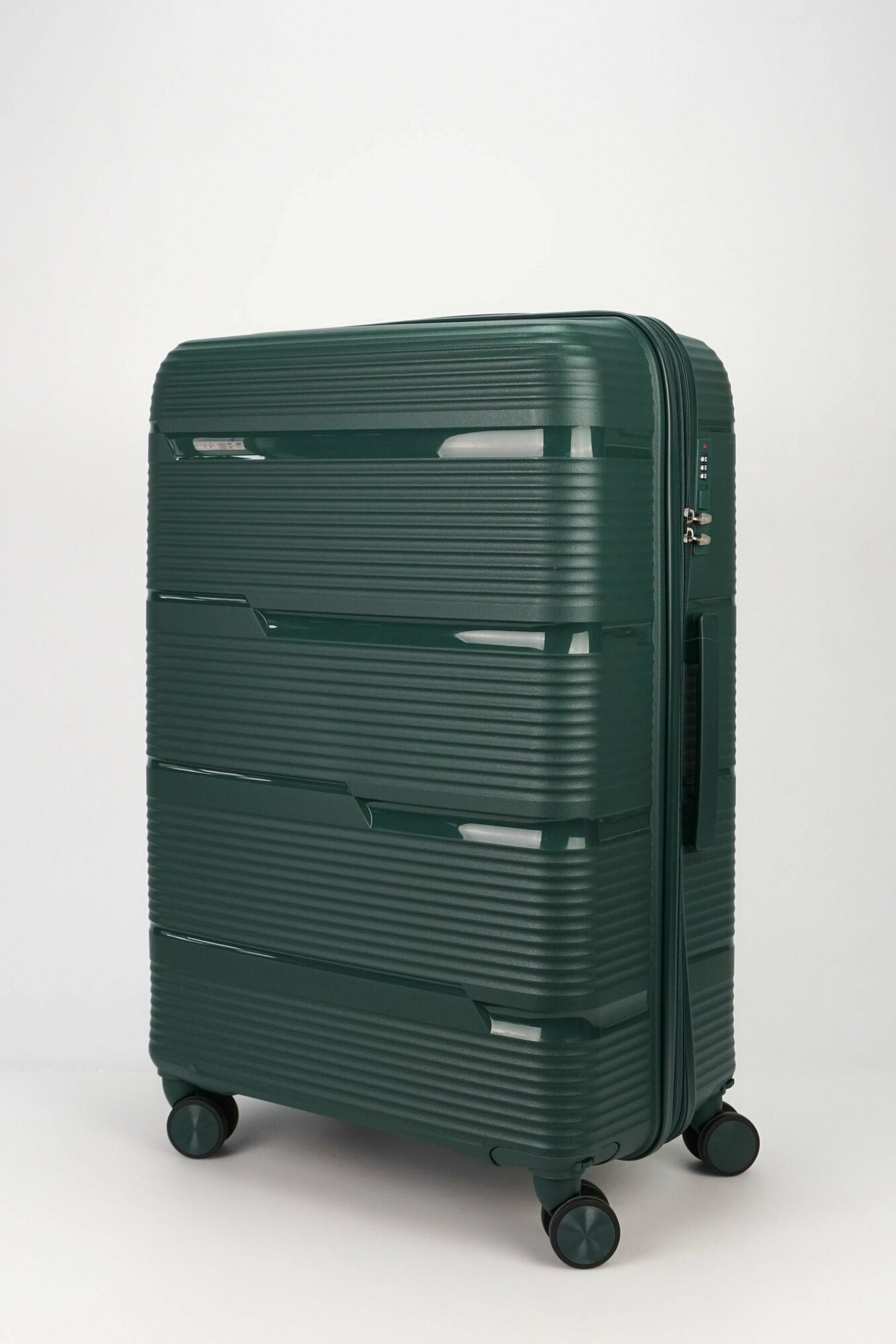 Купить Чемодан Sweetbags большой из полипропилена с расширением на 4-х съемных колесах с кодовым замком (Orlean) темно-зеленый XL