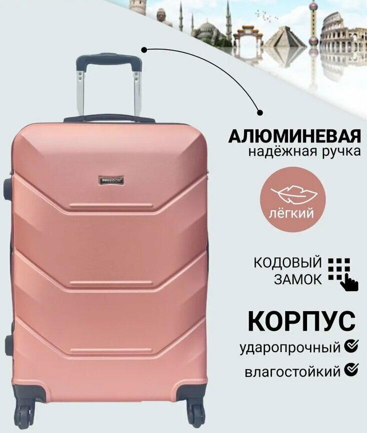 Чемодан ударопрочный FreeDom, размер M, 69 литров, 67 см, розовое золото, лучший