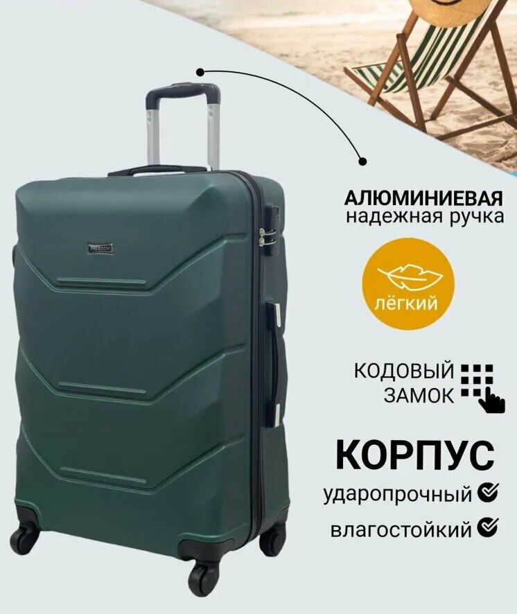 Чемодан ударопрочный FreeDom, размер L, 99 литров, 74 см, темно-зеленый, лучший